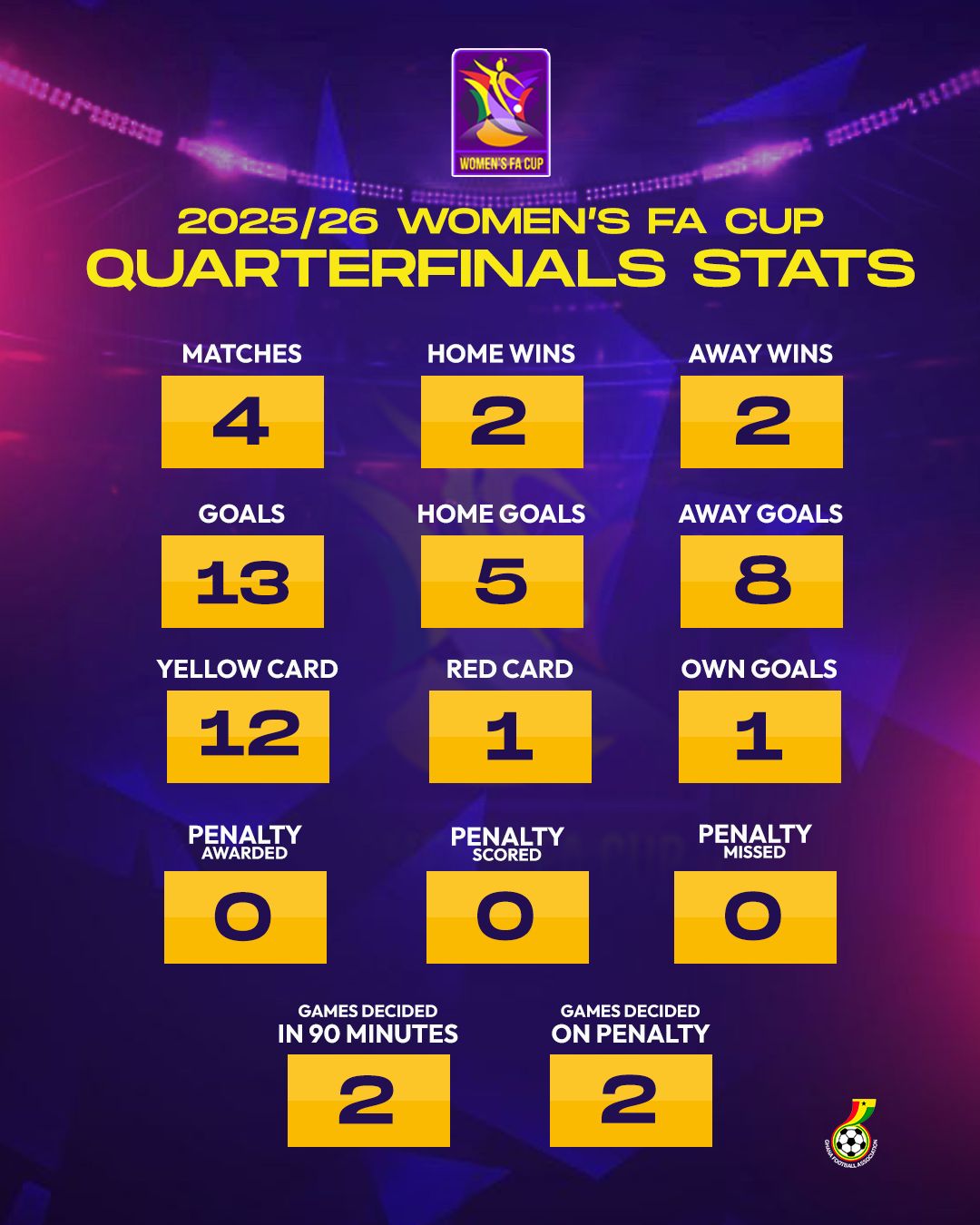 After 60 matches played in the Women’s FA Cup, 43 games have ended in home victories, while 17 have been won by away teams.