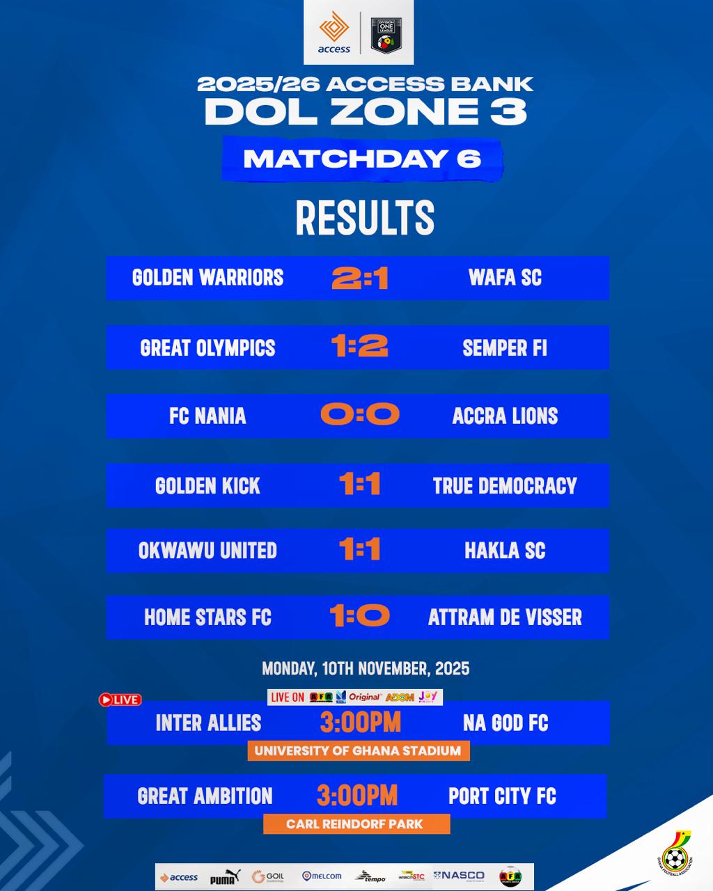 Golden Kick SC remains atop the Zone Three league table with 13 points, despite being denied a historic fifth consecutive victory following a 1-1 home draw against True Democracy on Saturday. Shaban Abubakar opened the scoring for Golden Kick SC in the 25th minute, but Mohammed Sulley equalized for the visitors with a fine header in the 49th minute.