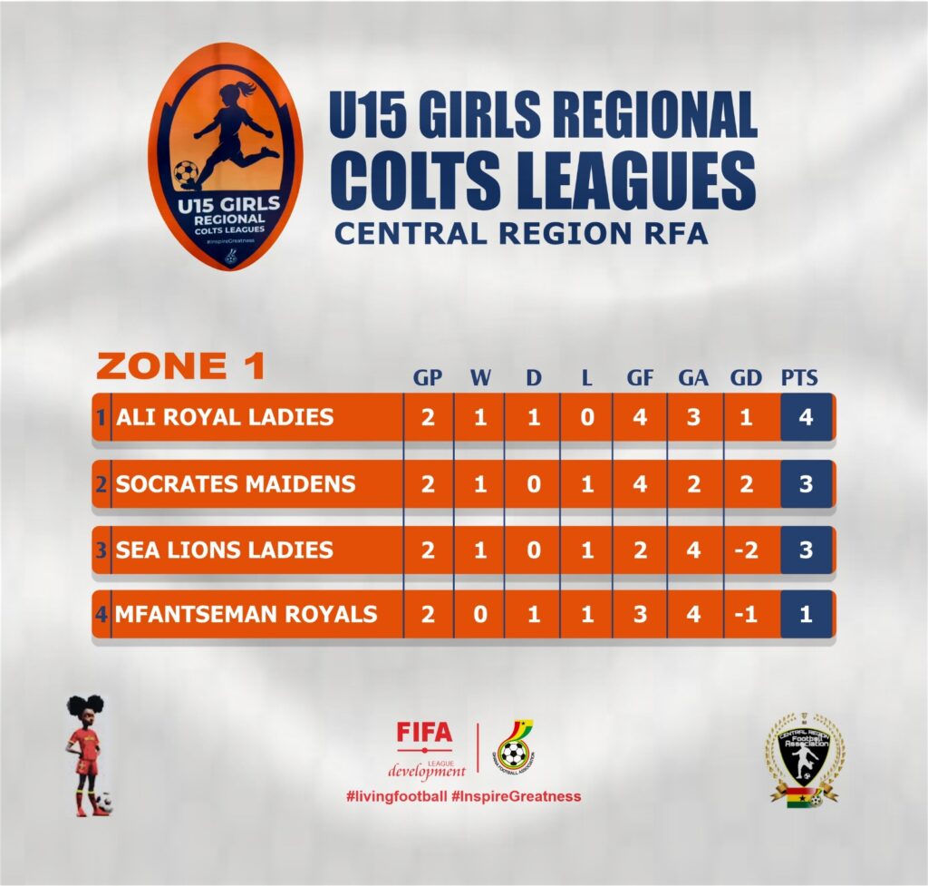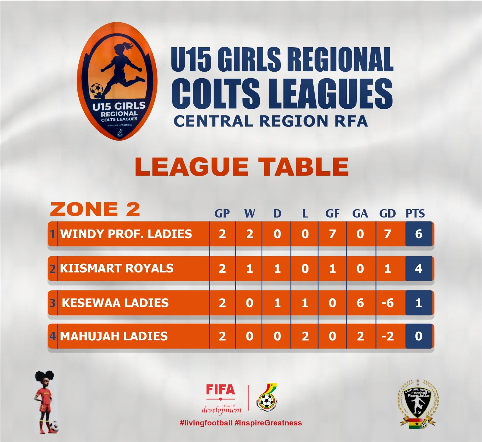 Ali Royal Ladies and Windy Professionals Ladies have taken early control of their respective zones after two match days in the Central Regional Football Association’s U15 Girls Colts League. Both sides have made strong starts to the competition, positioning themselves as early contenders in the youth development tournament.