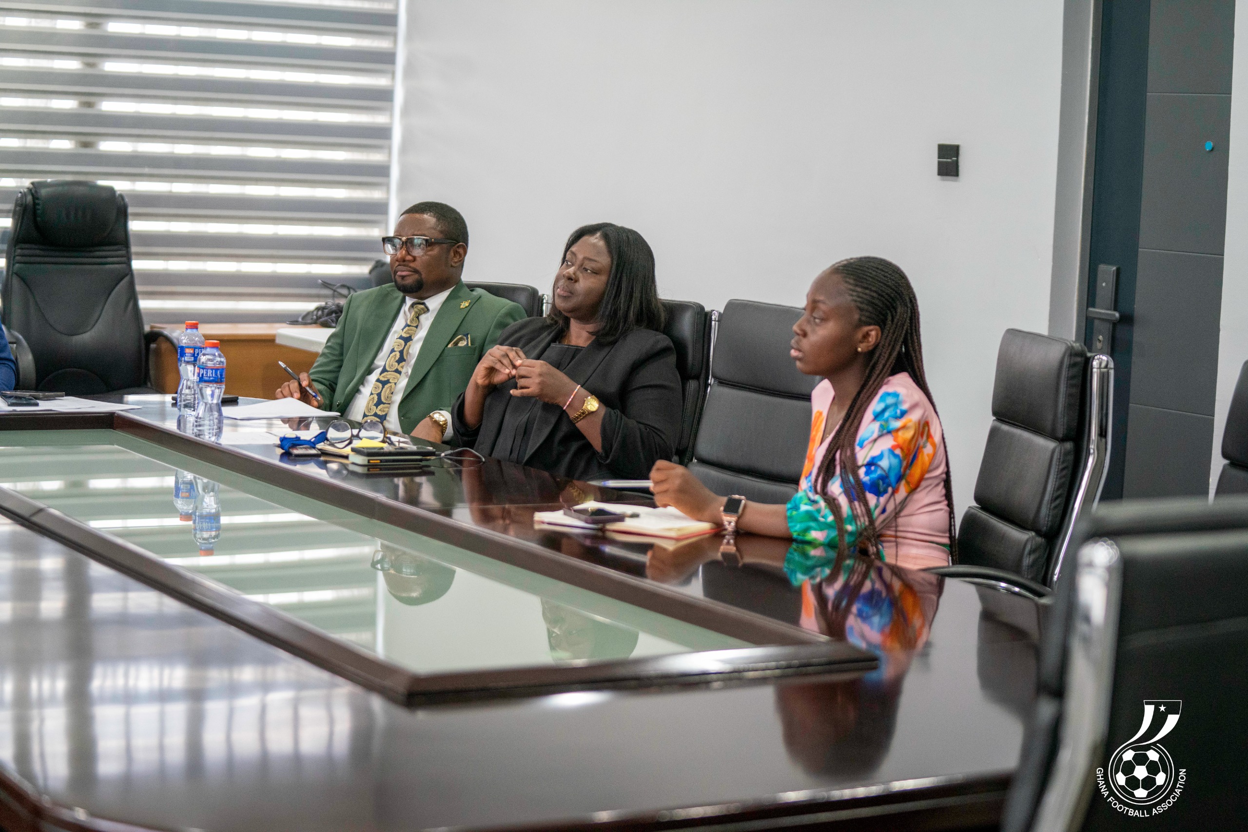 The meeting was attended by Vice Chairman Hon. Fred Agbenyo and committee member Michael Boakye, alongside key GFA staff including Neil Armstrong-Mortagbe (Head of PR and Strategy), Janice Odonkor (Business Development Manager), and Patrick Akoto (Senior Communications Manager and Media Attaché at the Office of the President).