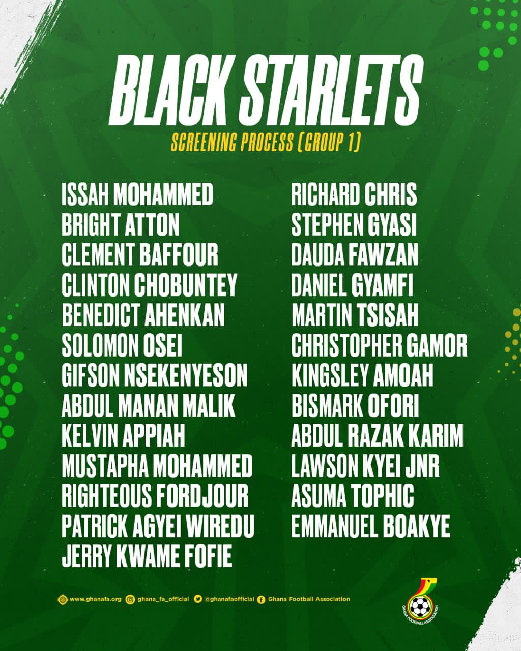 Coach Dr. Prosper Narteh-Ogum will begin a screening exercise on Monday, seeking players to augment the Black Starlets squad for the TotalEnergies U-17 Africa Cup of Nations.