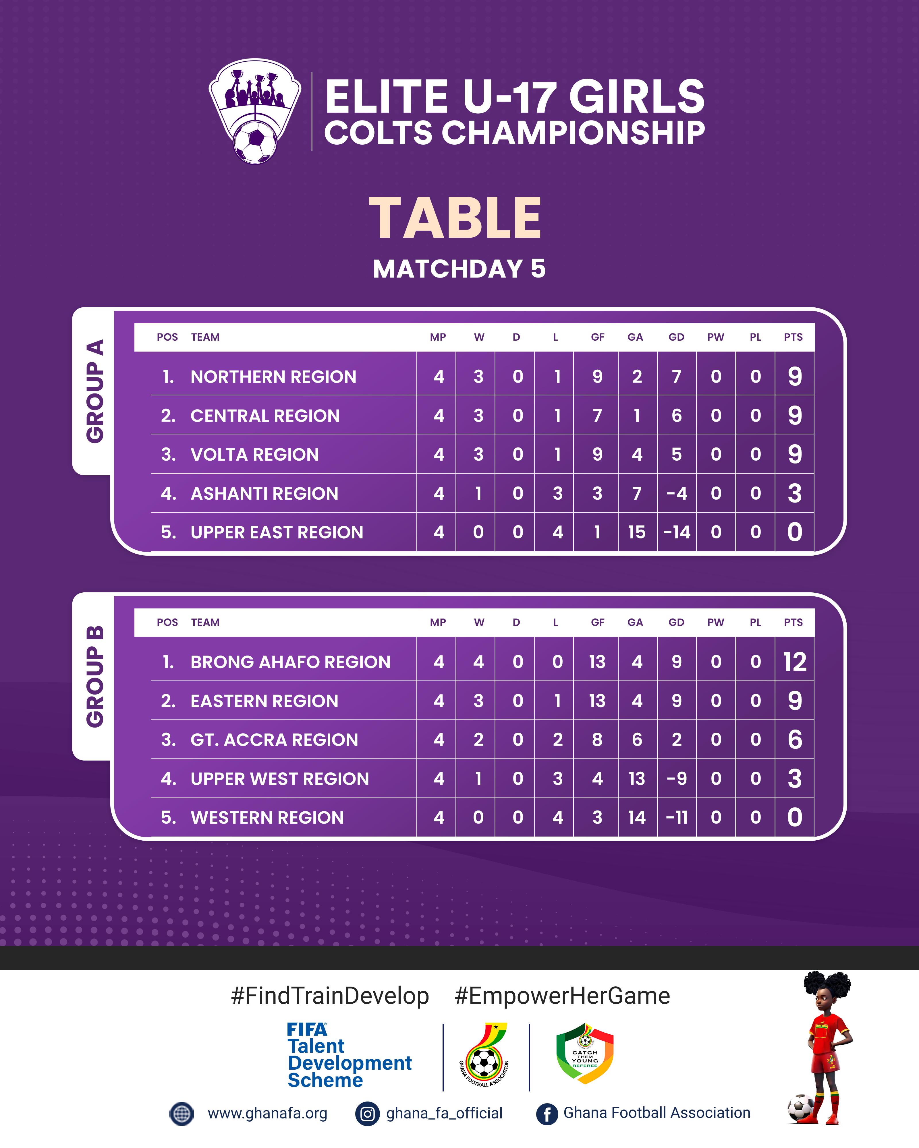 Brong Ahafo Region will face Central Region in the finals of the maiden edition of the Elite U17 Girls Colts championship.