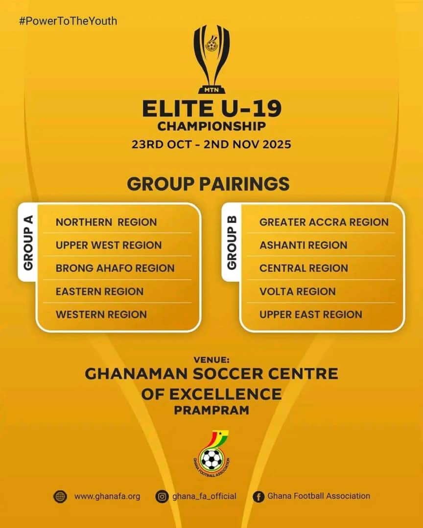 The draw, held on Tuesday, October 14, 2025, took place on the sidelines of the official launch of the MTN Elite U-19 Championship at the GFA headquarters.
