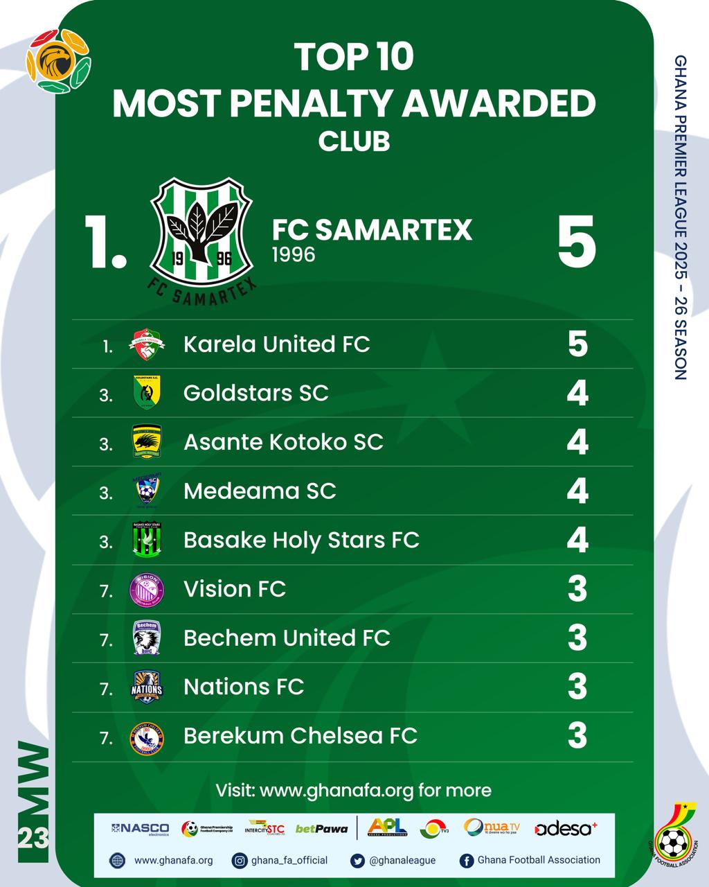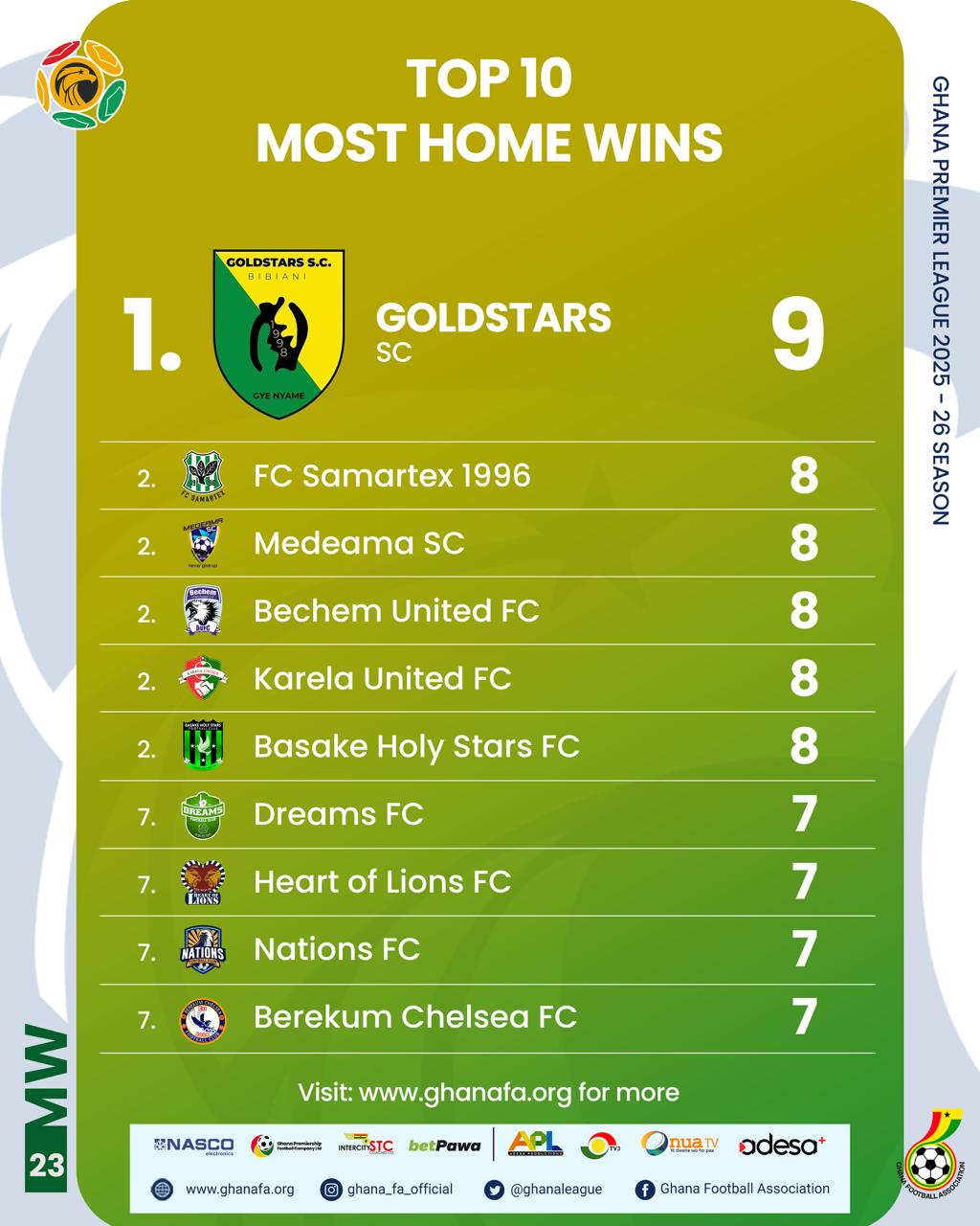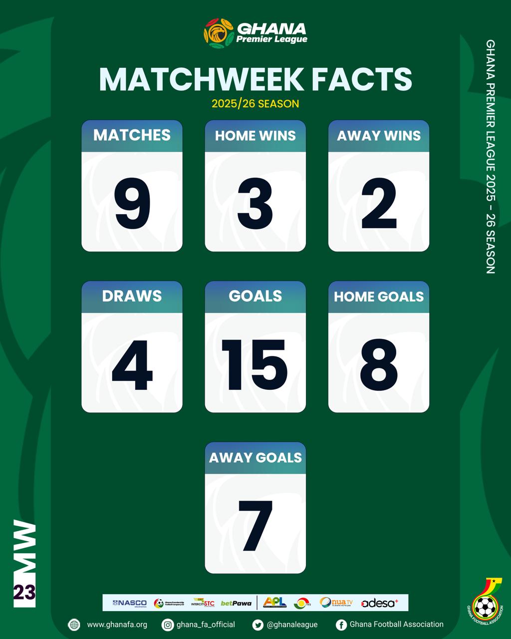 The Ghana Premier League has recorded 207 matches and 390 goals after Matchday 23
