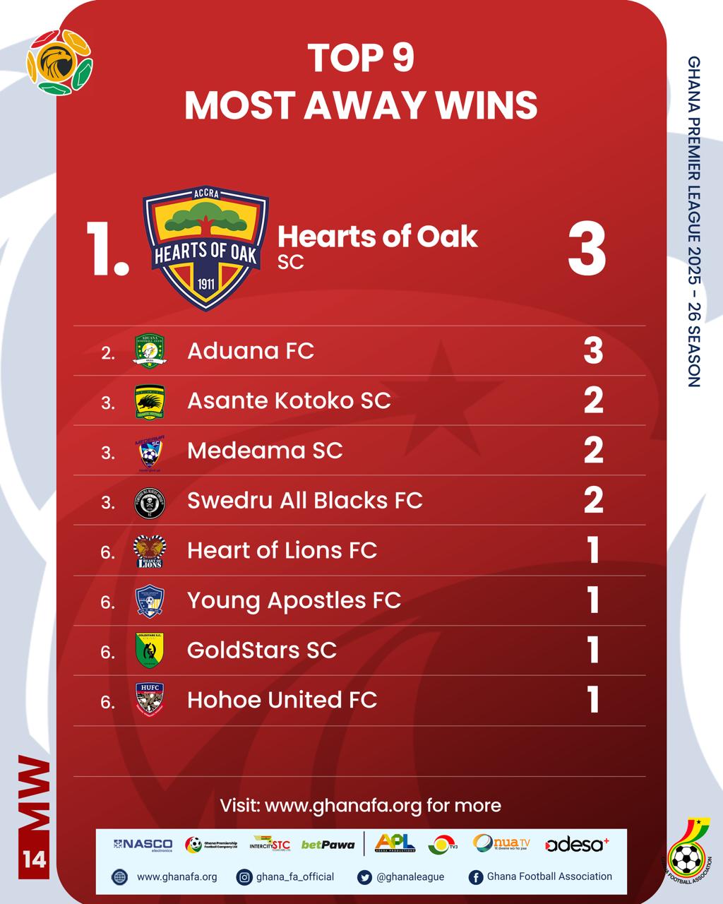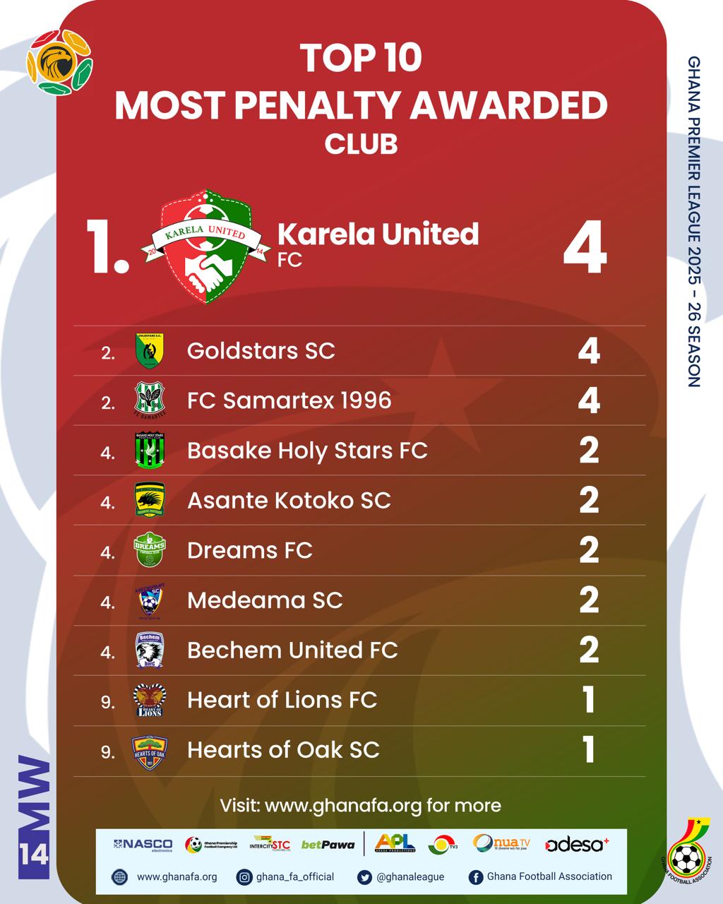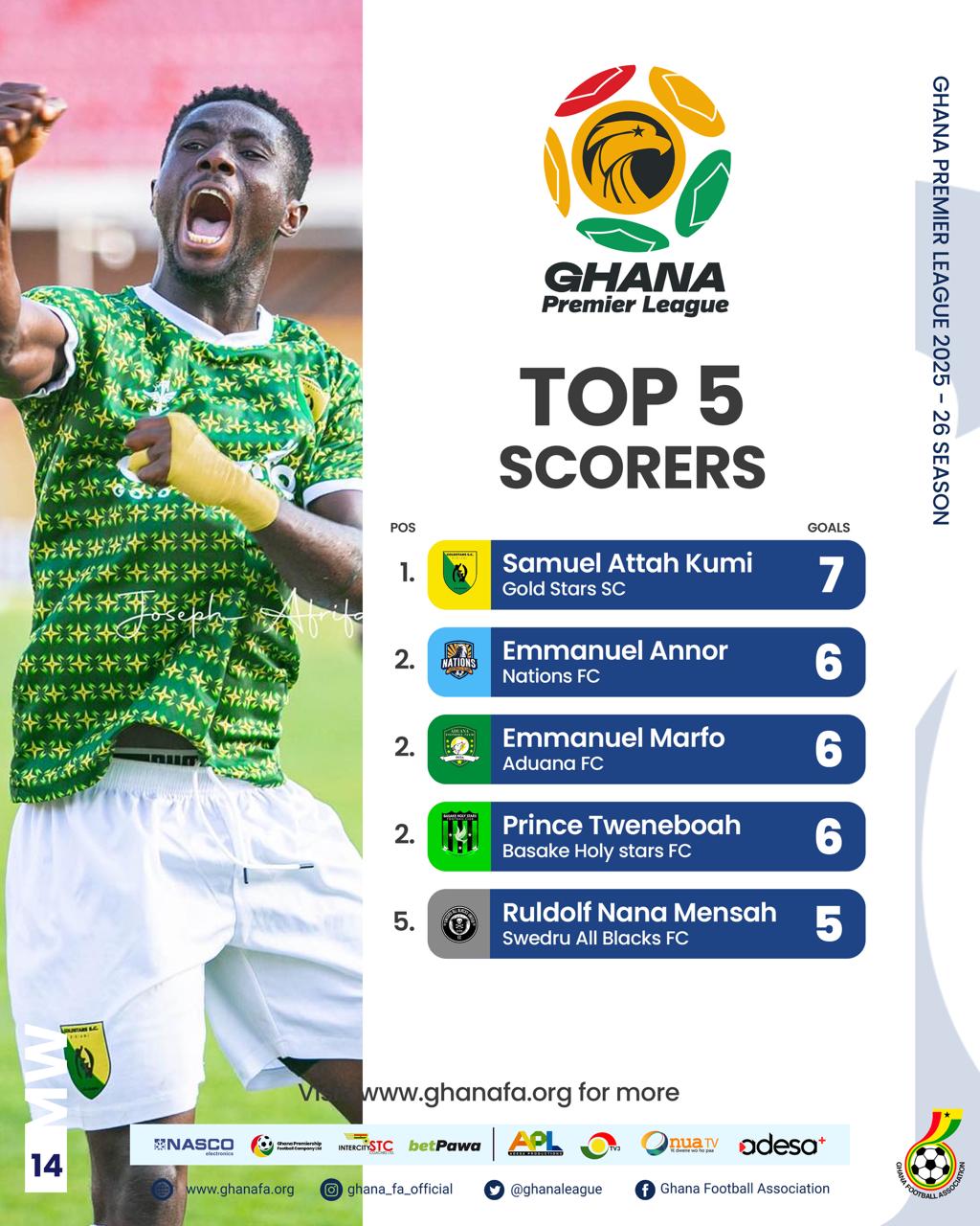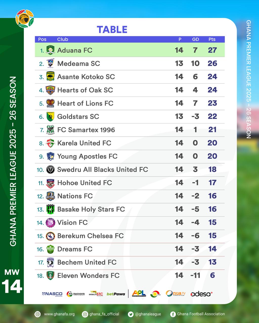 A total of 125 matches have been played in the Ghana Premier League after Matchday 14, with one outstanding fixture from Week 14 between Gold Stars FC and Medeama SC.