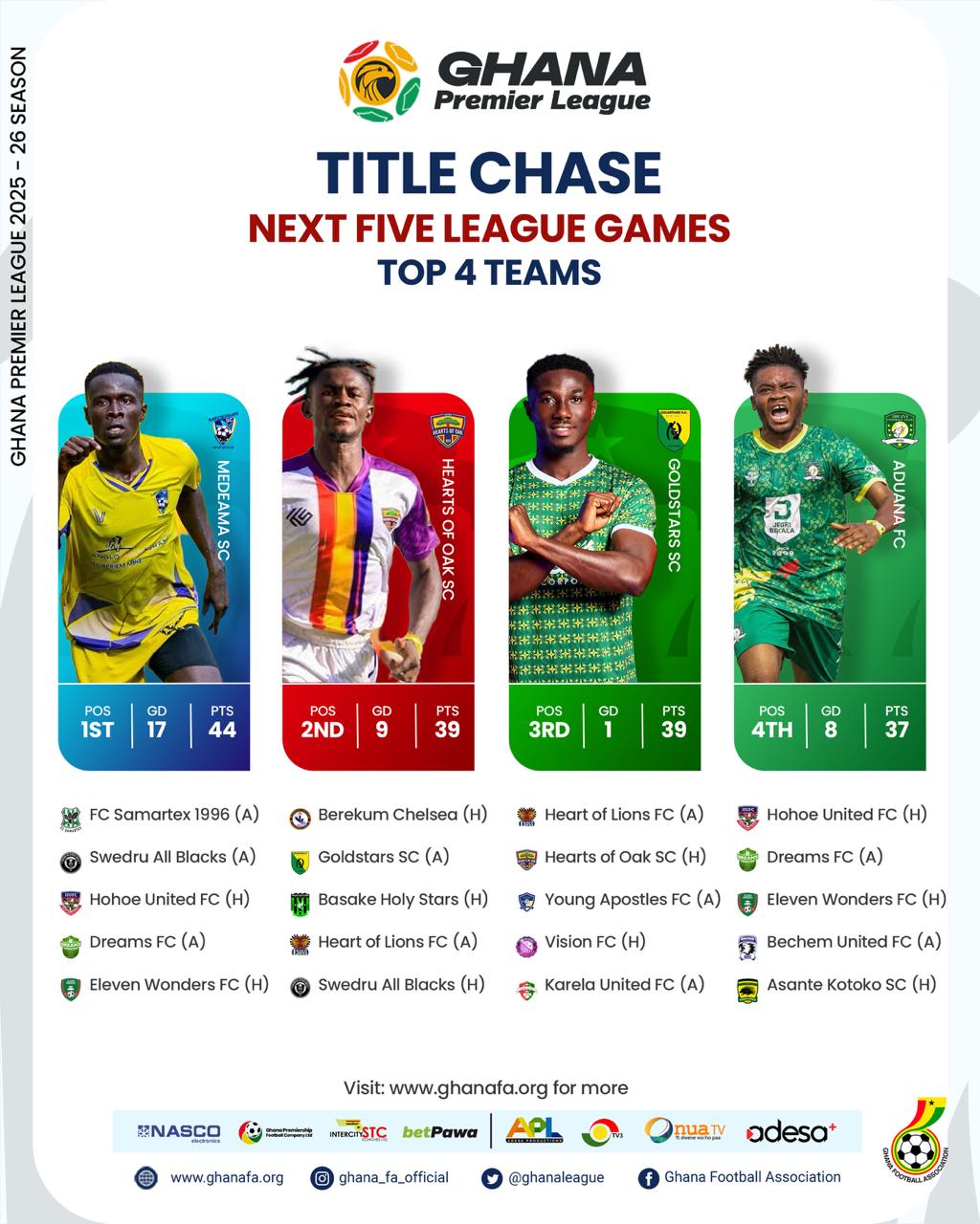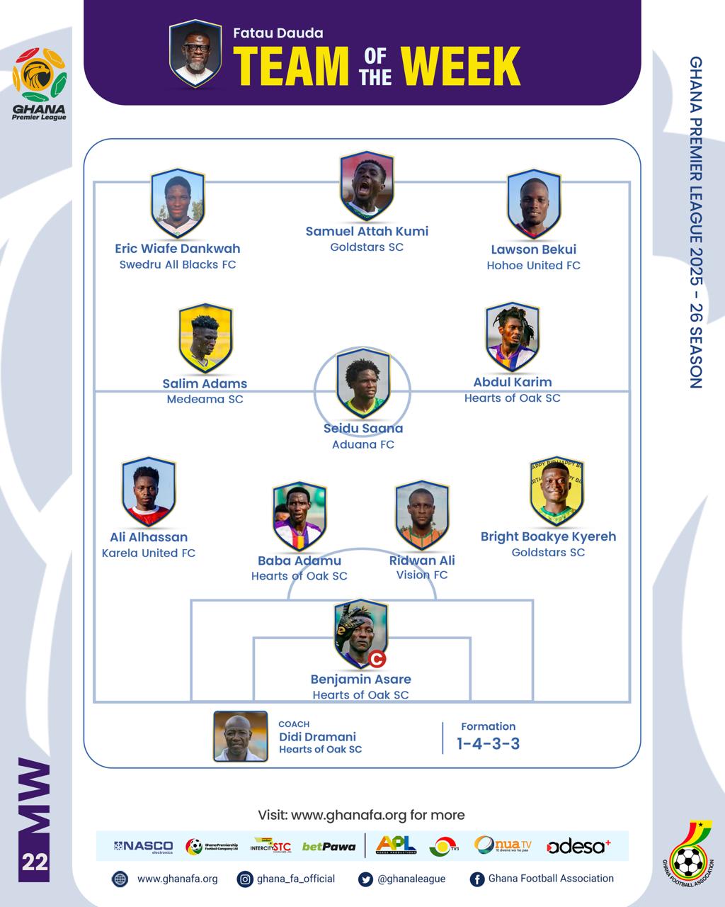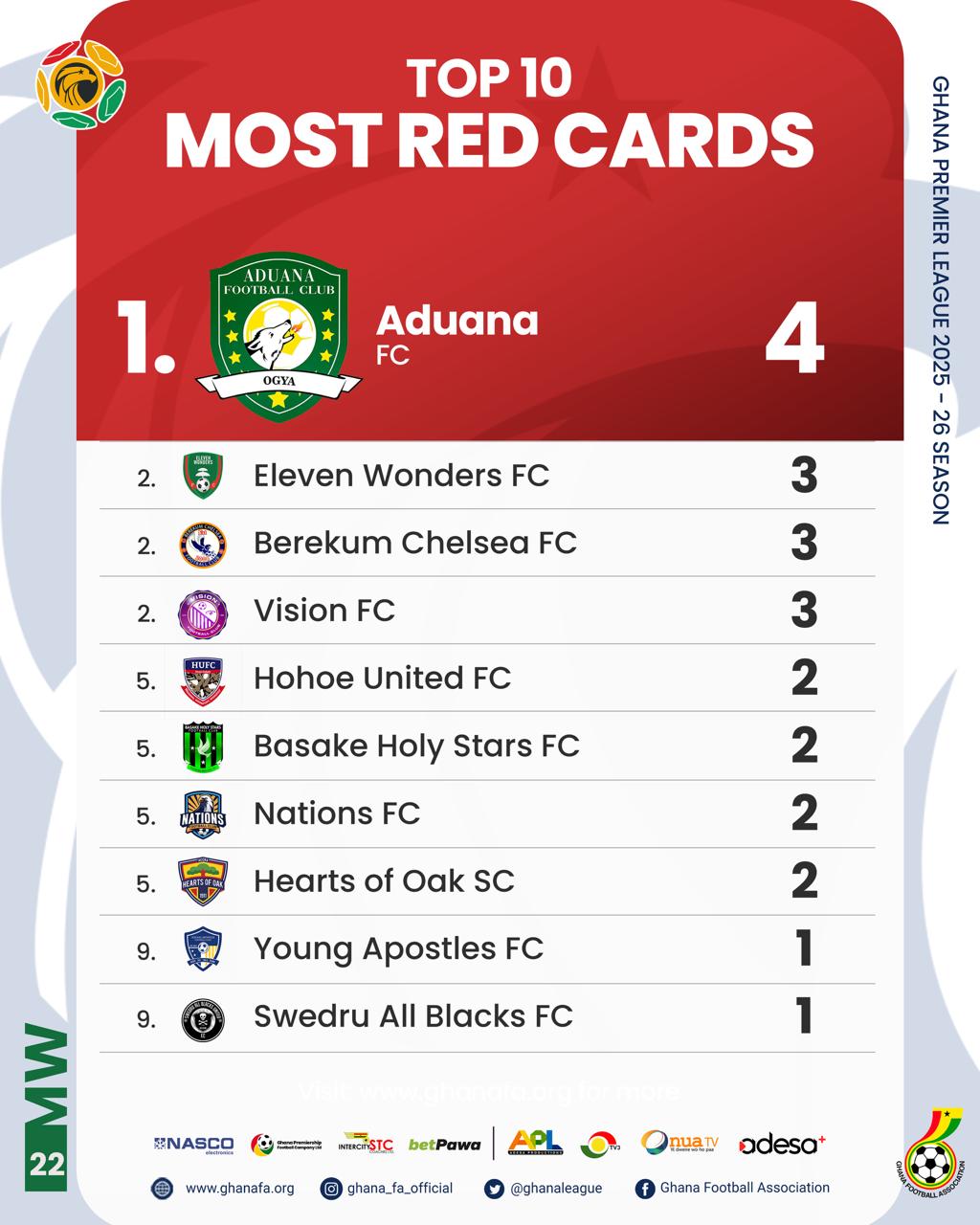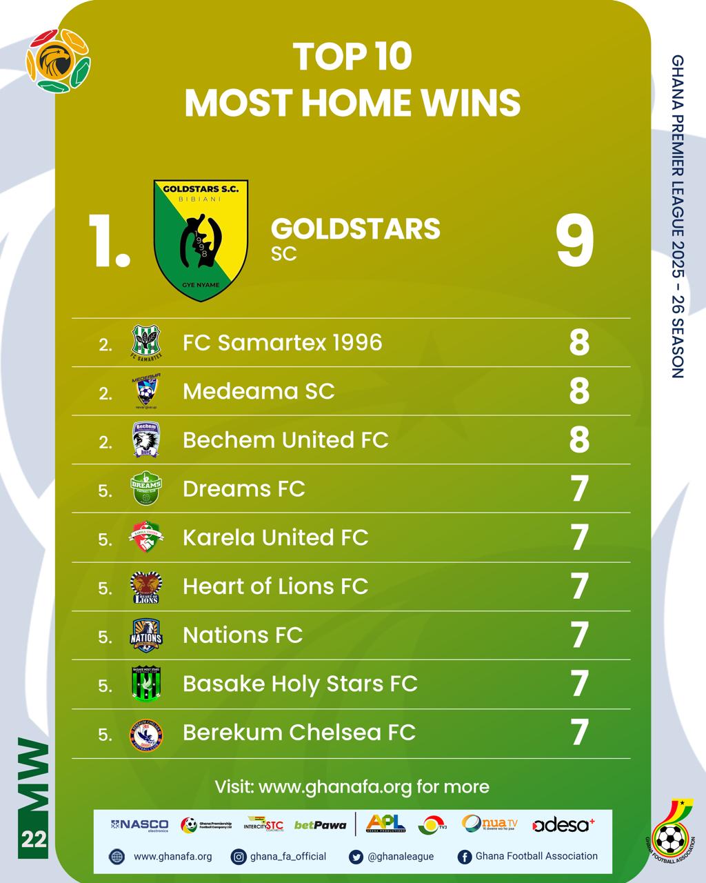After Matchday 22 of the Ghana Premier League, a total of 198 matches have been played, with 12 match weeks remaining to conclude the season.