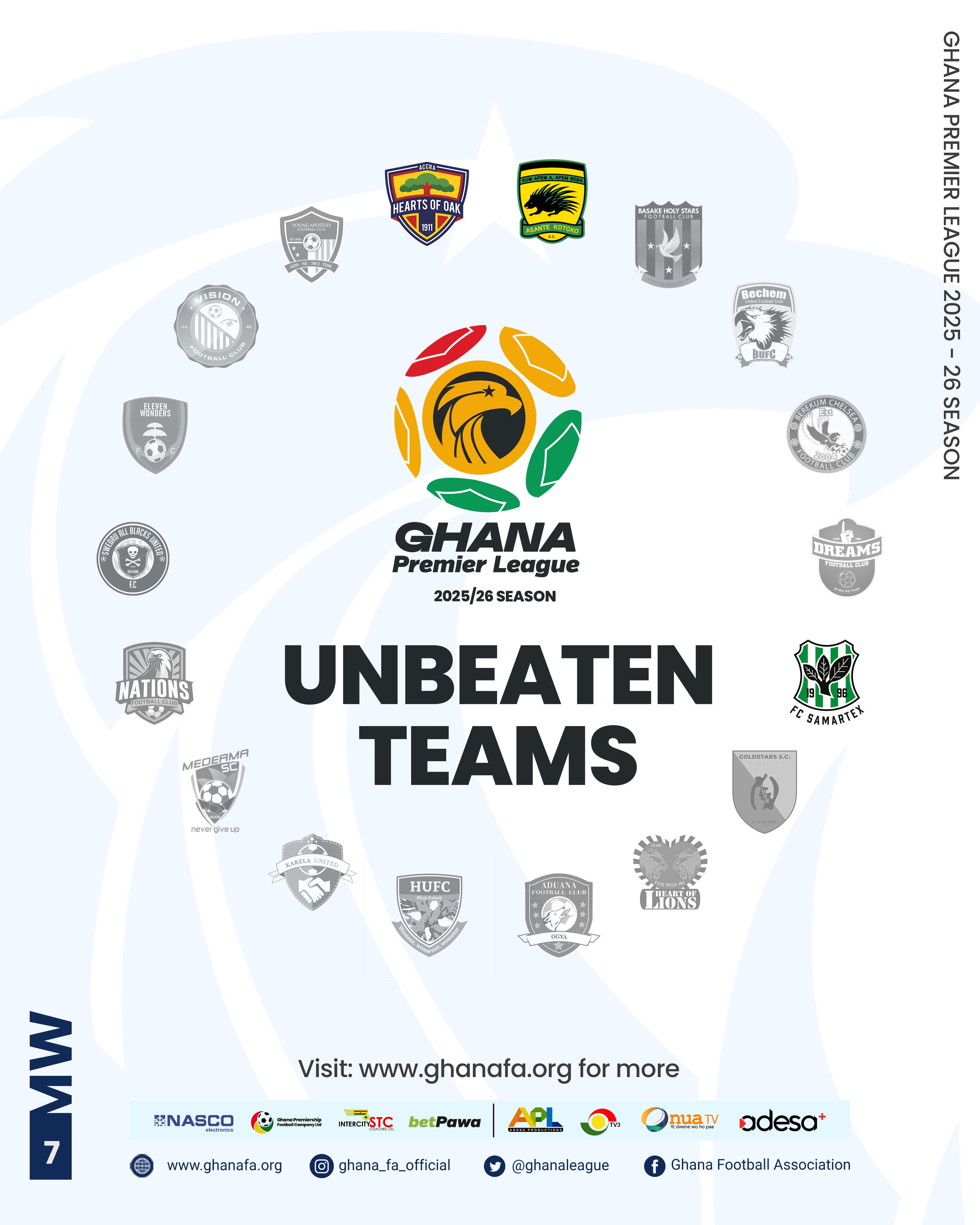 Hearts of Oak, FC Samartex, and Asante Kotoko SC are the only unbeaten sides so far this season. While the Phobians and the Timber Giants have each played seven matches, the Porcupine Warriors have featured in only four but have maintained an impressive unbeaten run.