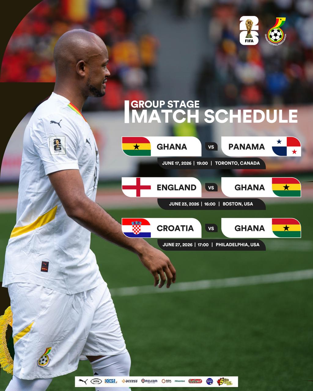 Ghana have been drawn into Group L of the 2026 FIFA World Cup, and the schedule has been confirmed. The team will face Panama, England, and Croatia in that order.