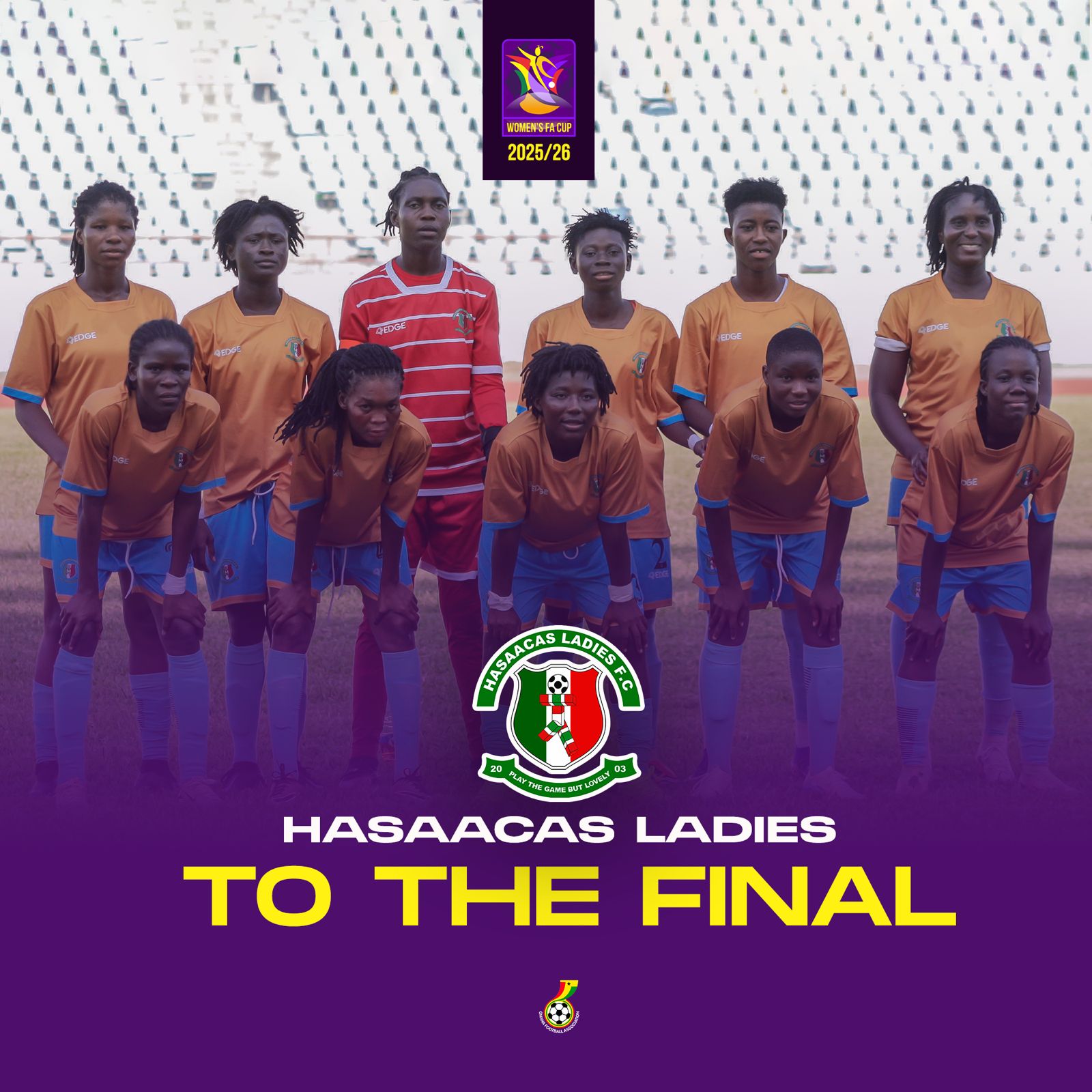 At the final whistle, it was Hasaacas Ladies who celebrated a deserved 3–0 and into the Women’s FA Cup final.