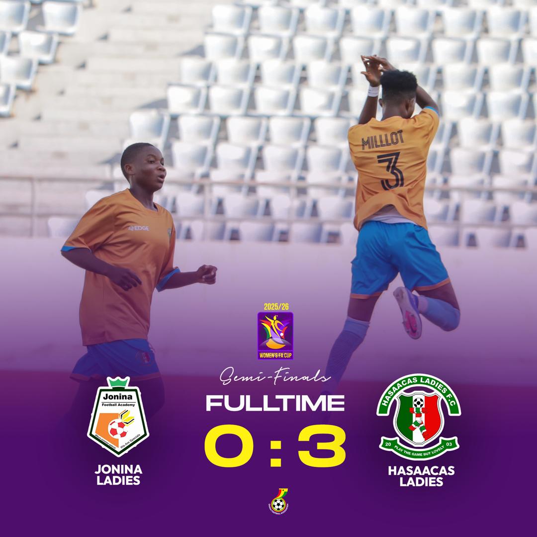Hasaacas Ladies secured their place in the Women’s FA Cup final after a solid 3–0 victory over Jonina FC in the semi-final at the Cape Coast Stadium on Saturday evening.