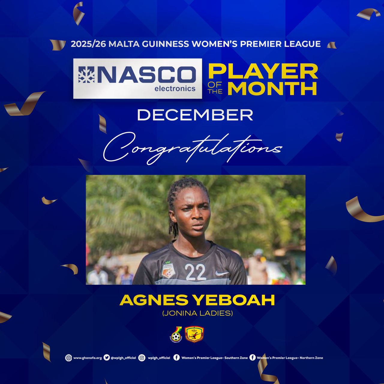 Completing the double for the club, head coach Joseph Osei Owusu was adjudged Coach of the Month, a reward for his tactical organisation and effective team management. Under his guidance, Jonina Ladies recorded strong results in December, displaying cohesion, discipline, and a clear playing identity.
