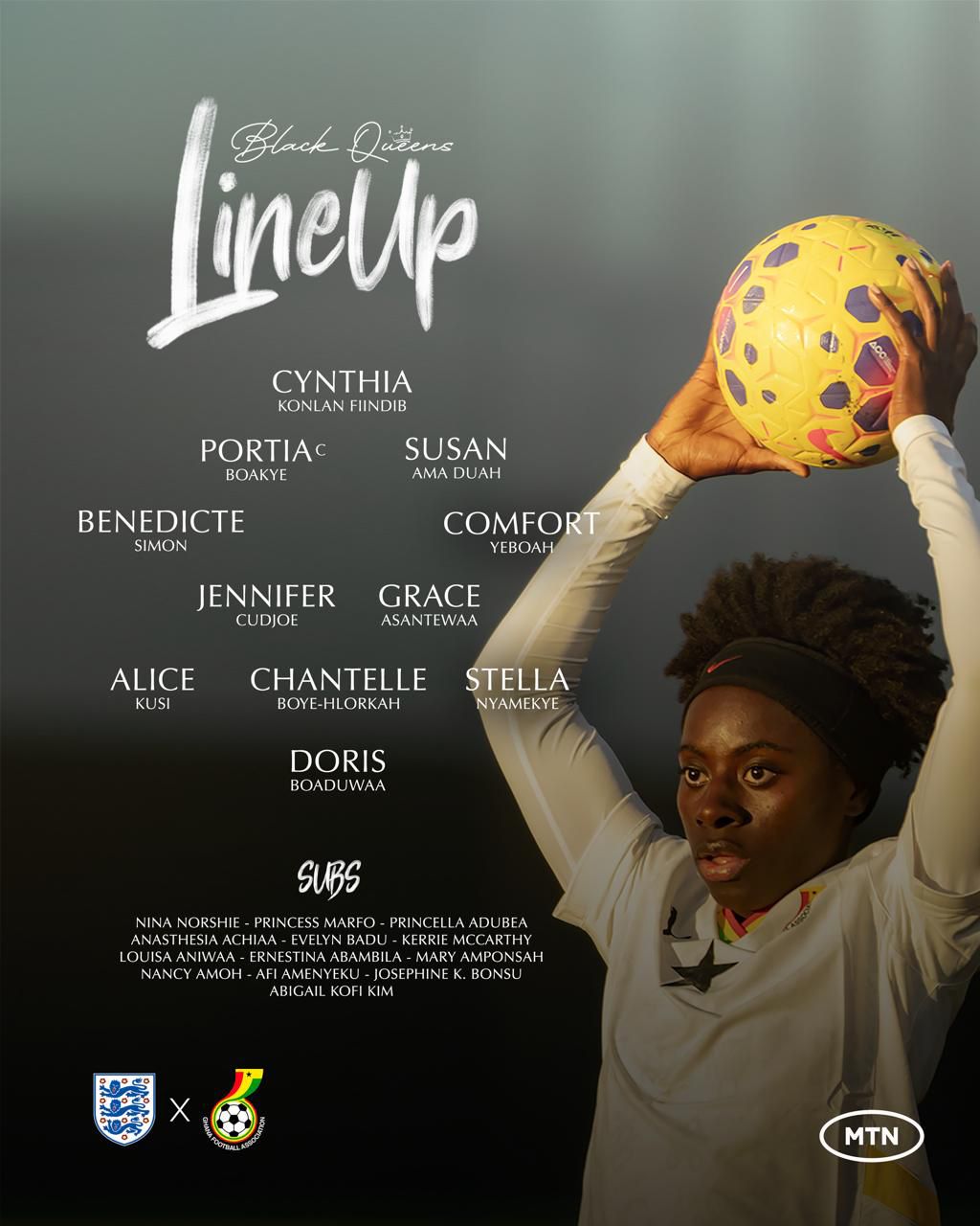 The midfield features the industrious trio of Jennifer Cudjoe, Stella Nyamekye and Grace Asantewaa, whose energy and quick transitions will be crucial as Ghana seek to match England's pace and control in the middle of the park.
