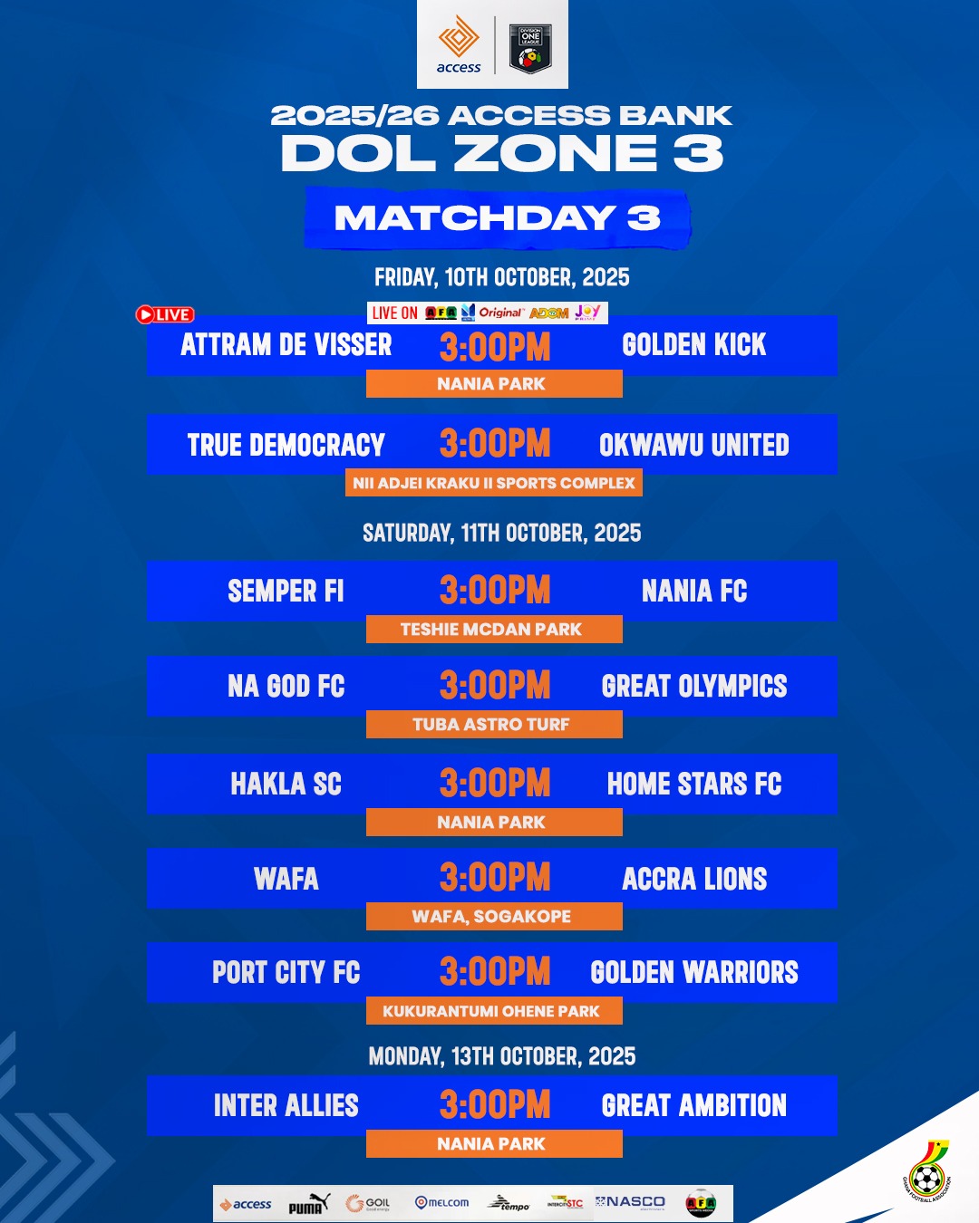 At the Legon Nania Park, Sempe FI will host FC Nania, while Na God squares off against Accra Great Olympics at the Teshie McDan Astro Turf.
