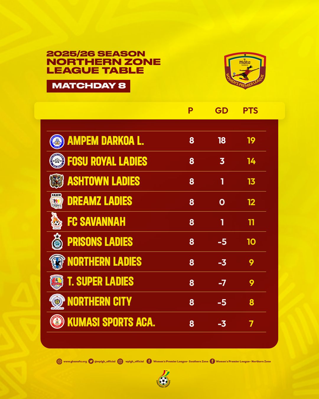 After Matchday 8, the Malta Guinness Women’s Premier League has recorded 80 matches, producing 45 home wins, 19 away wins, and 16 draws. A total of 167 goals have been scored, with 104 coming at home and 63 away, while goal distribution shows a near balance between halves, with 82 goals in the first half and 85 in the second half. Discipline has also been notable, as 193 yellow cards have been issued so far, alongside eight penalties awarded, six of which were converted and two missed.