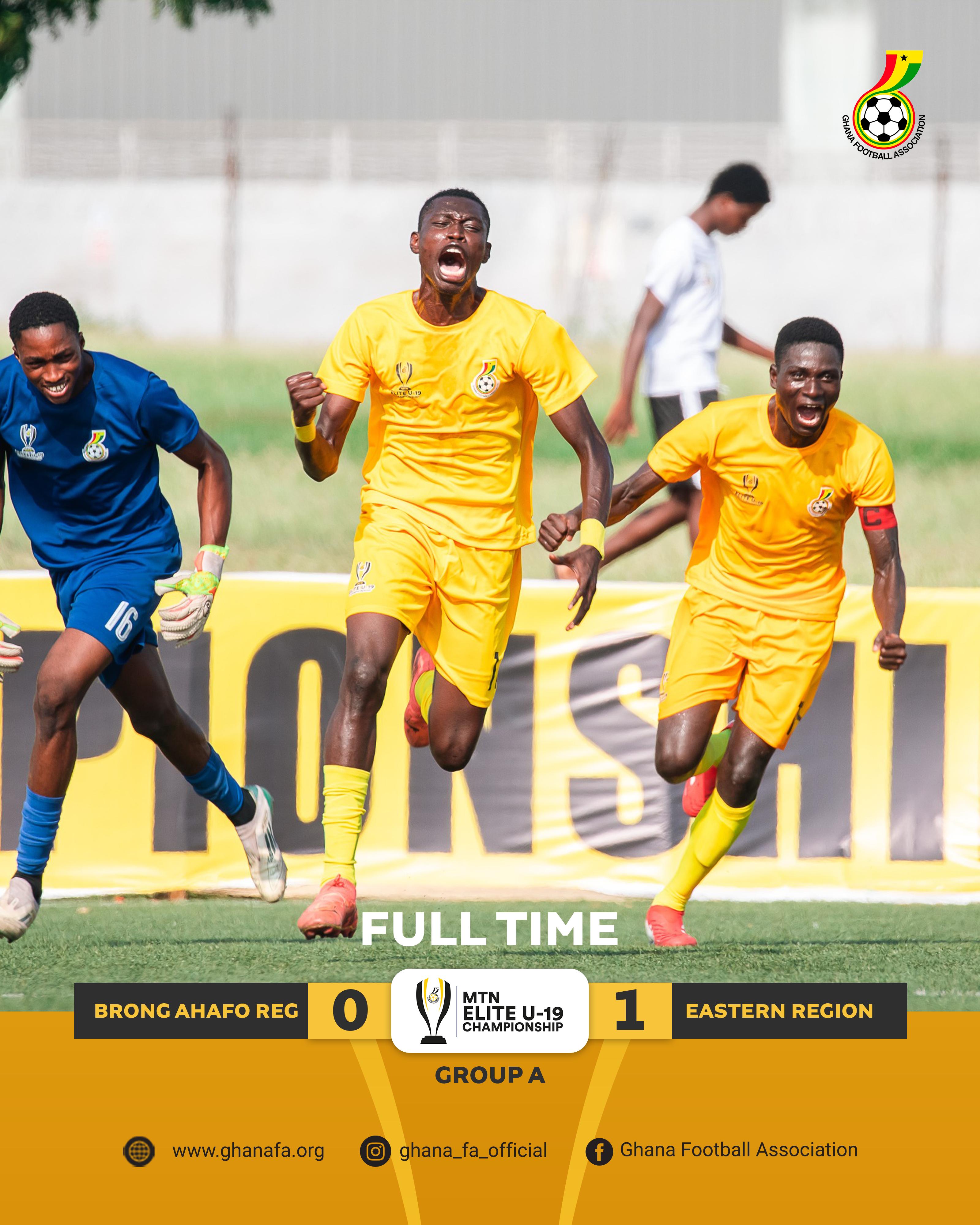 Eastern Region continued their impressive run in the ongoing MTN Elite U19 Championship with a narrow 1–0 victory over Brong Ahafo on Matchday 3, extending their perfect record to three wins out of three at the Ghanaman Soccer Centre of Excellence in Prampram.