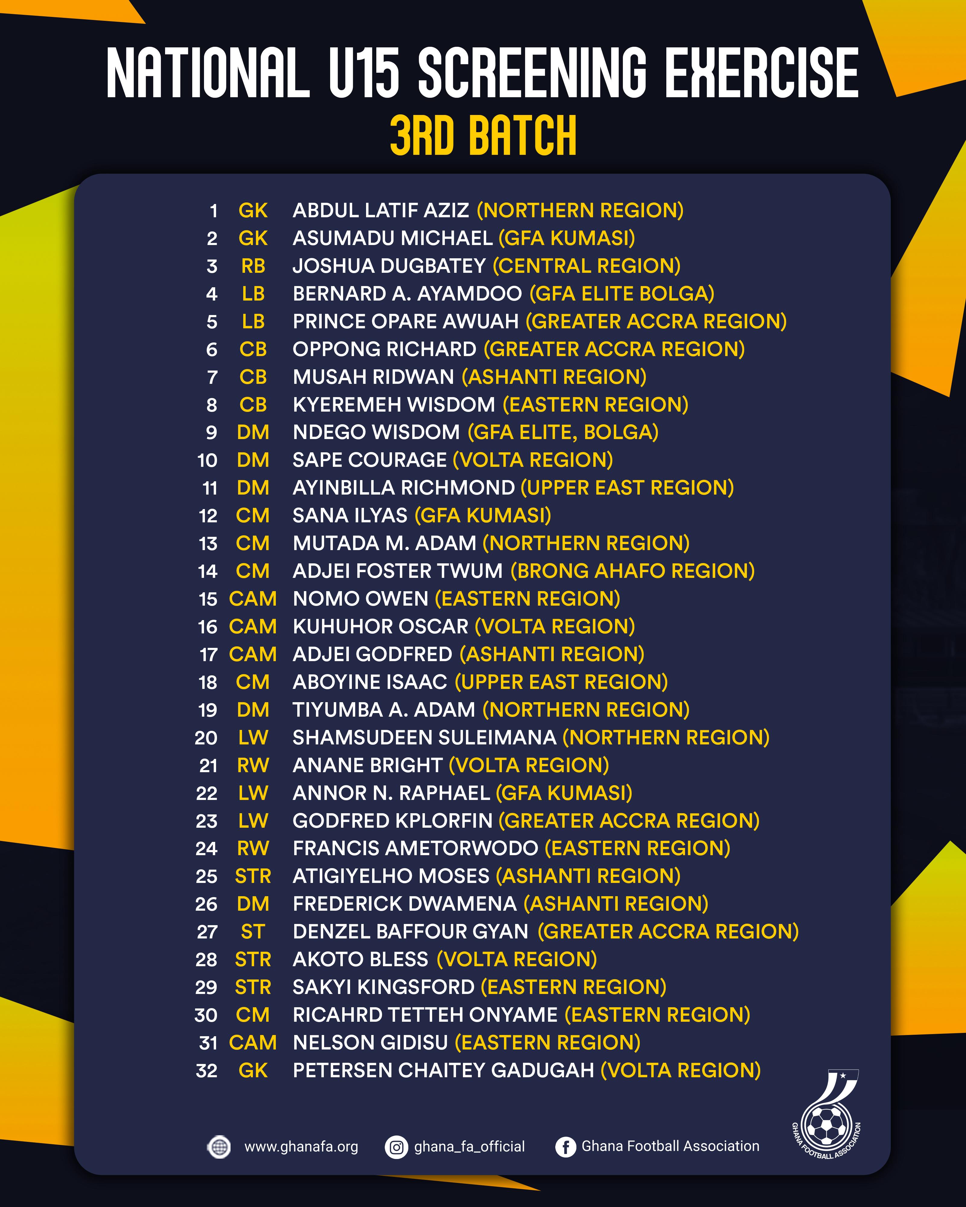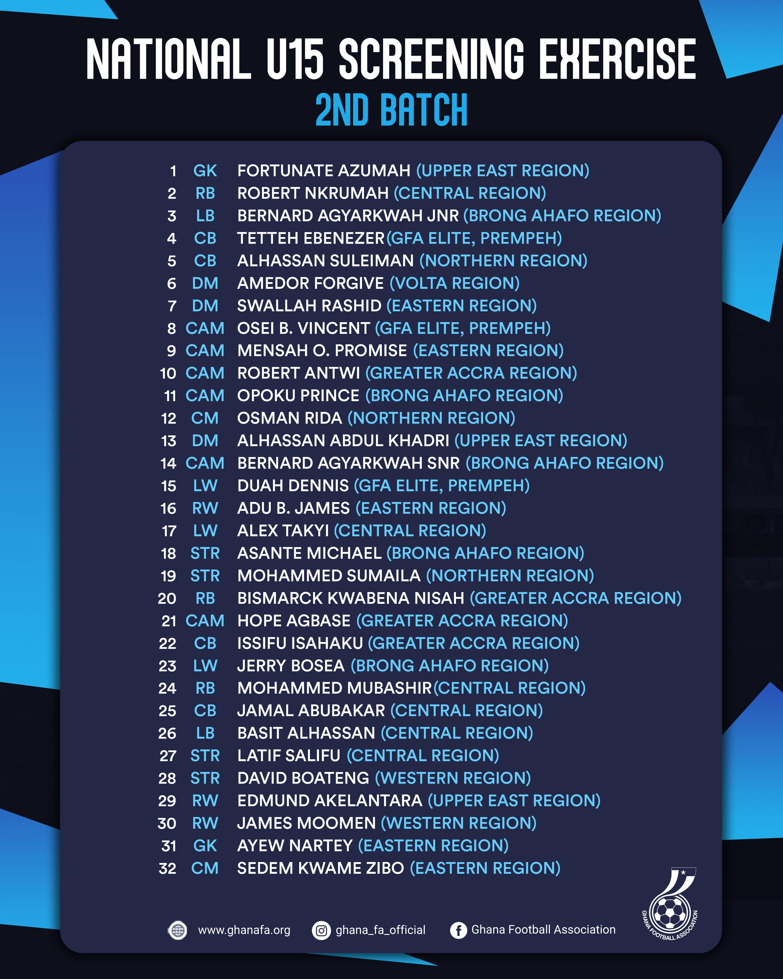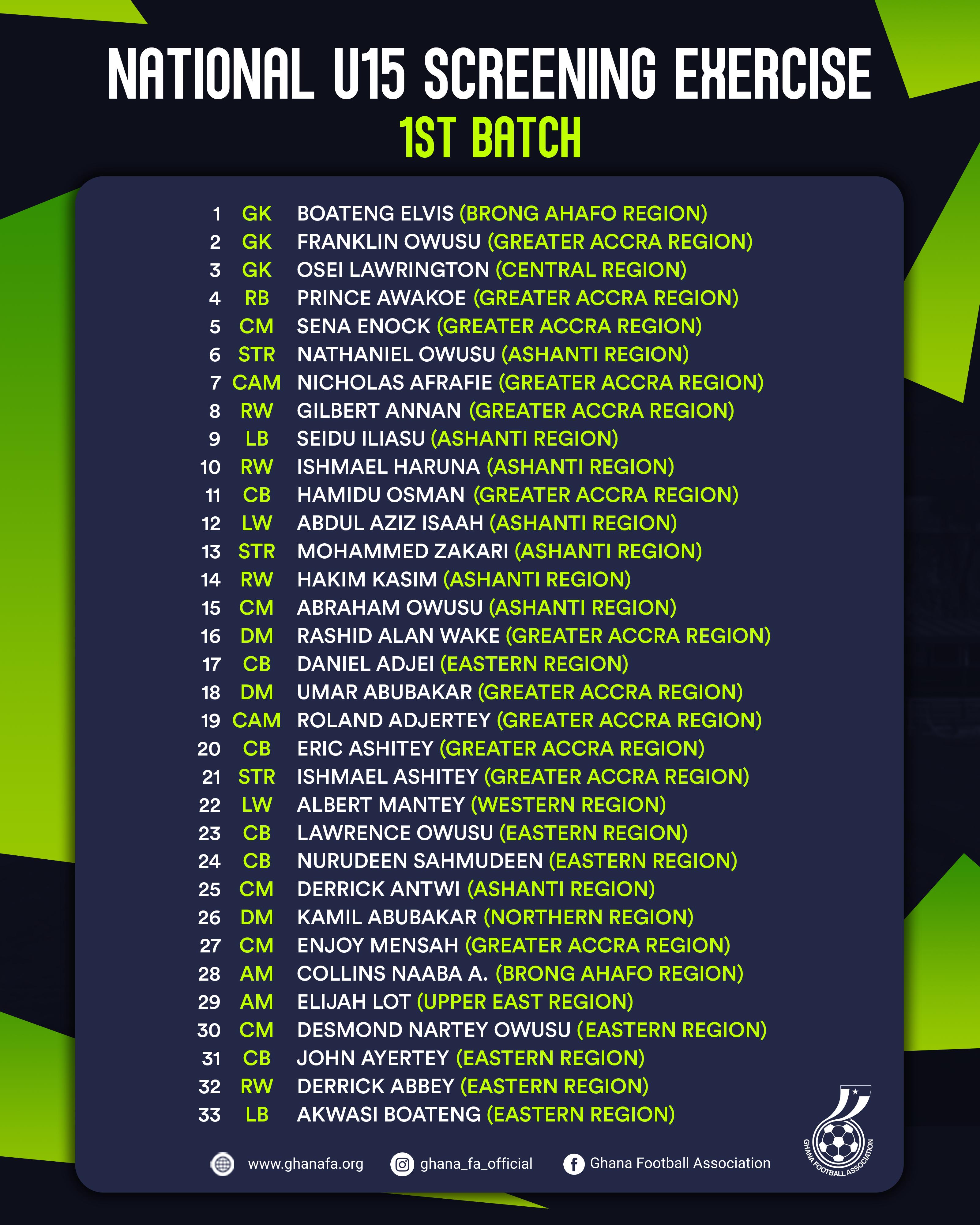 The set up of the U-15 National team forms part of the GFA's broader strategy to strengthen youth football structures and to ensure a steady supply of talent for the Black Starlets and the senior National team.