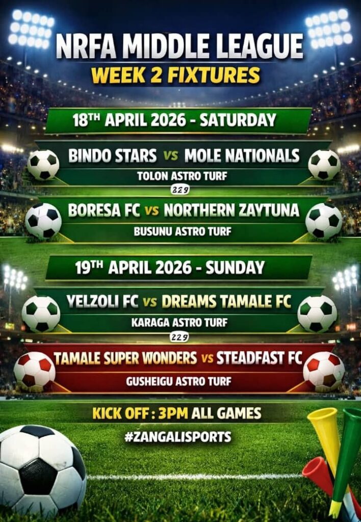 On Saturday, April 18, Bindo Stars will face Mole Nationals at the Tolon AstroTurf while Boresa FC take on Northern Zaytuna at the Busunu AstroTurf. The action continues on Sunday with Yelzoli FC set to play Dreams Tamale FC at the Karaga AstroTurf, while Super Wonders host Steadfast FC at the Gushegu AstroTurf.