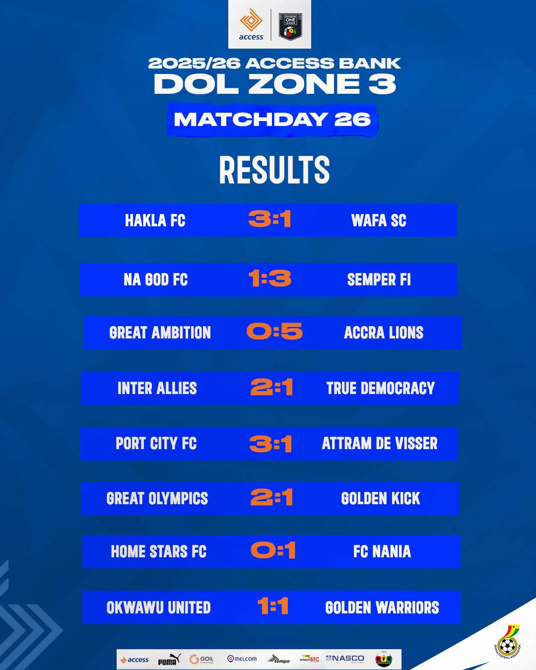 Former Premier League side Great Olympics returned to winning ways with a 2-1 home victory over struggling Golden Kick SC at the Teshie McDan Sports Complex on Sunday. David Sewornu opened the scoring in the 42nd minute, and Frederick Akatuk doubled the advantage five minutes later. Golden Kick SC pulled one back through Richmond Seyram in stoppage time, but it proved only a consolation. Great Olympics now sit 8th in Zone Three with 34 points.