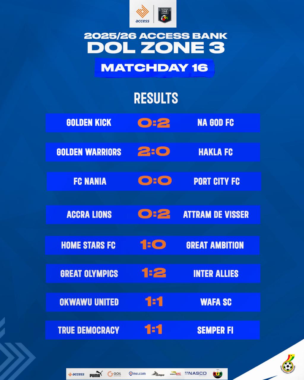 Golden Kick SC’s struggles continued as they suffered a 2-0 loss to Na God FC at the Tuba Astroturf, marking their sixth defeat of the season. Forward Mohammed Nikoi stole the show, scoring twice in the 31st and 69th minutes to secure all three points for Na God FC. Golden Kick SC now sit seventh in the Zone three table with 22 points after Matchday 16.