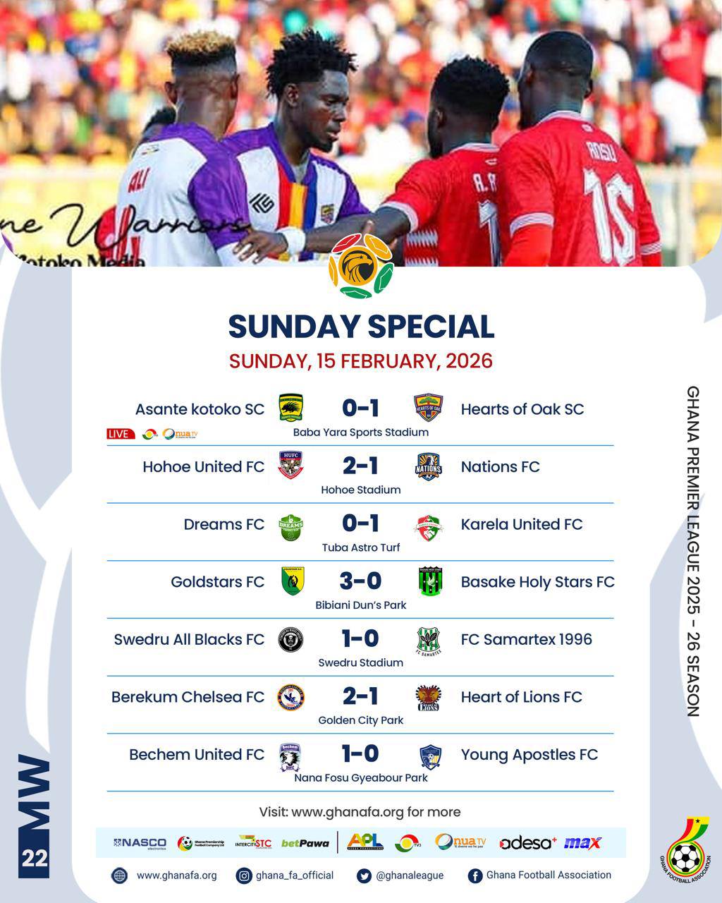There was late drama at the Tuba Astro Turf, where Karela United snatched a dramatic 1-0 win over Dreams FC through Ali Alhassan’s stoppage-time strike. The late winner ended Dreams’ impressive home unbeaten run and lifted Karela into seventh place, while Dreams slipped further down the standings amid growing relegation concerns.