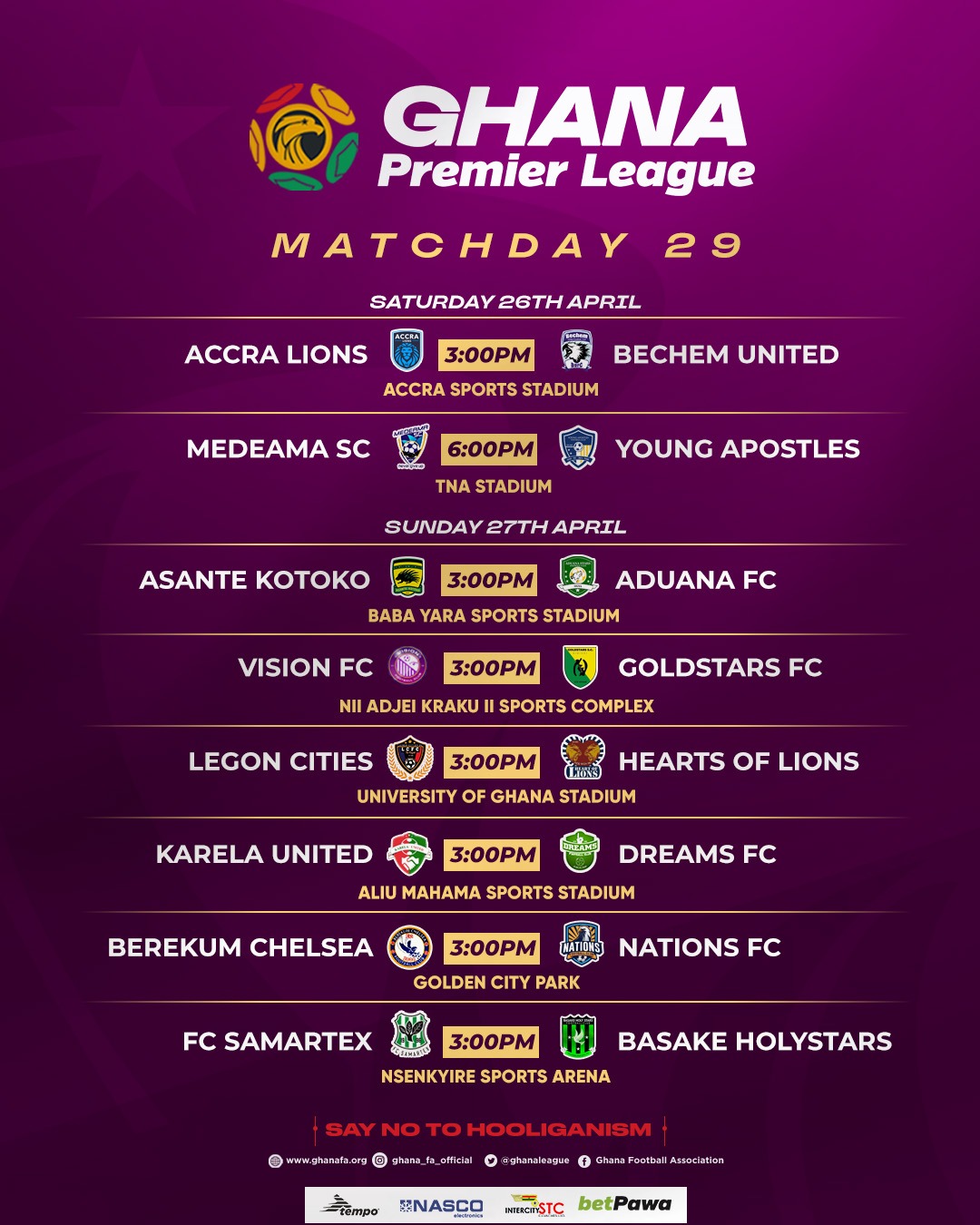 Third-placed Heart of Lions travel to the capital to battle relegation-threatened Legon Cities.
