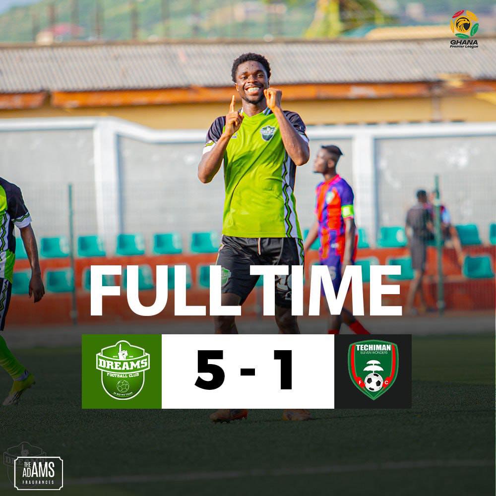 Dreams FC produced a stunning second-half comeback to thrash Eleven Wonders 5–1, highlighting a dramatic round of action in the Ghana Premier League as both the title race and relegation battle intensified.