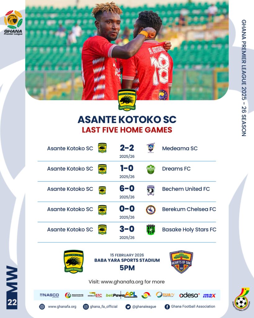 Asante Kotoko head into the blockbuster fixture under mounting pressure. The Porcupine Warriors have endured back-to-back defeats in all competitions, most notably their painful elimination from the MTN FA Cup at the Round of 16 after losing on penalties to Aduana FC at home.