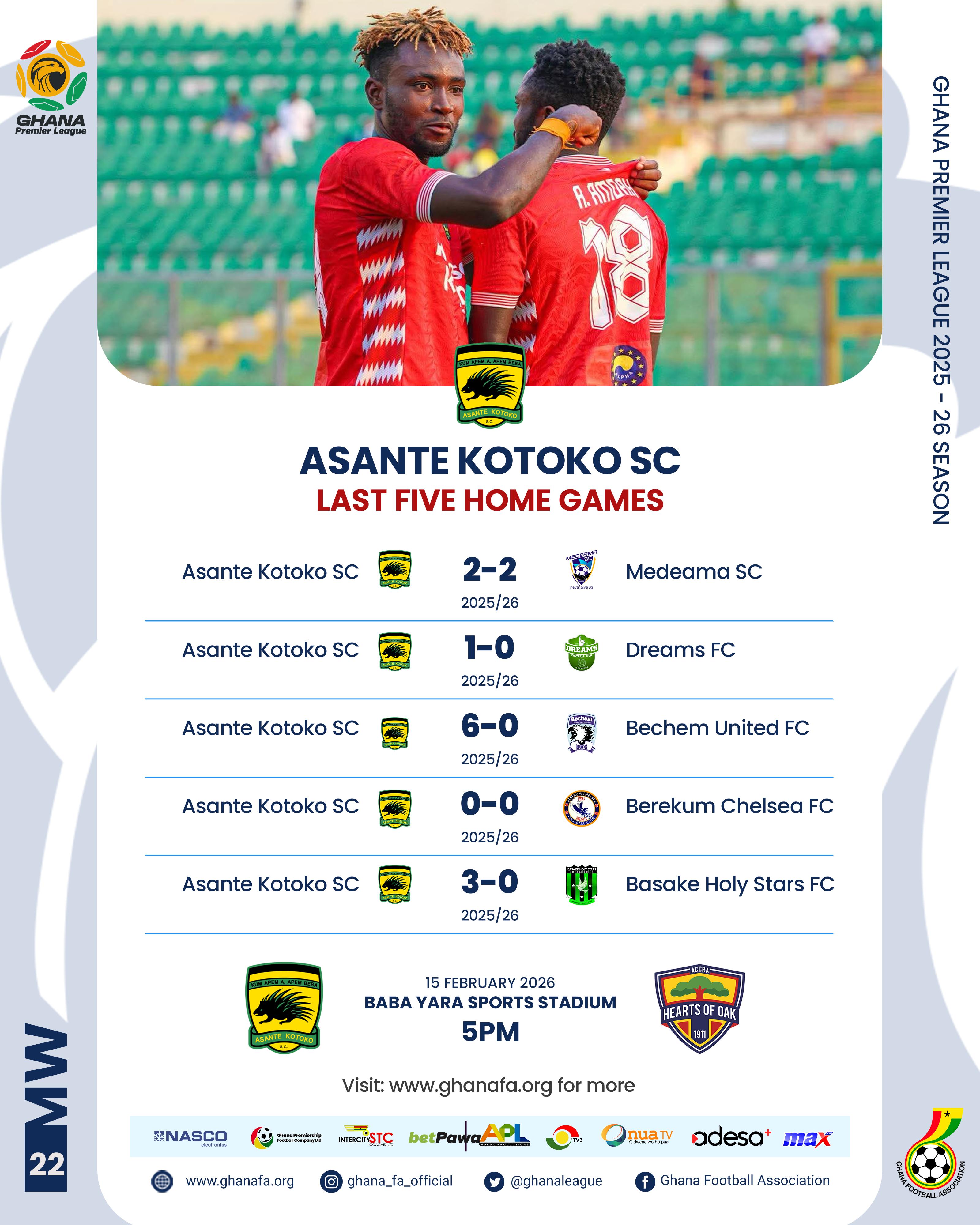 However, one psychological hurdle remains: Hearts have not secured a Premier League victory away to Kotoko in Kumasi since the 2020/21 season.