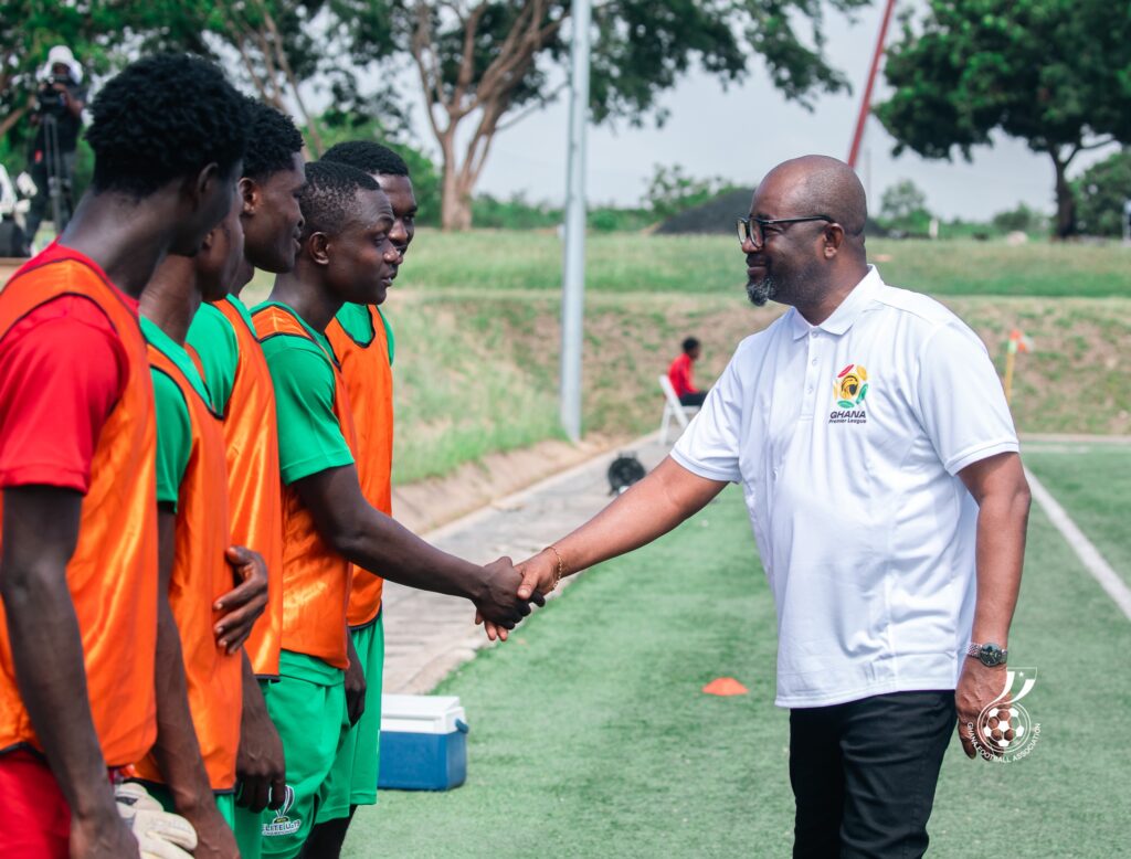 President of the Football Association, Kurt Edwin Simeon-Okraku, paid a visit to the Ghanaman Soccer Centre of Excellence on Saturday, October 25, 2025, to interact with players and officials participating in the ongoing MTN Elite U19 Championship.