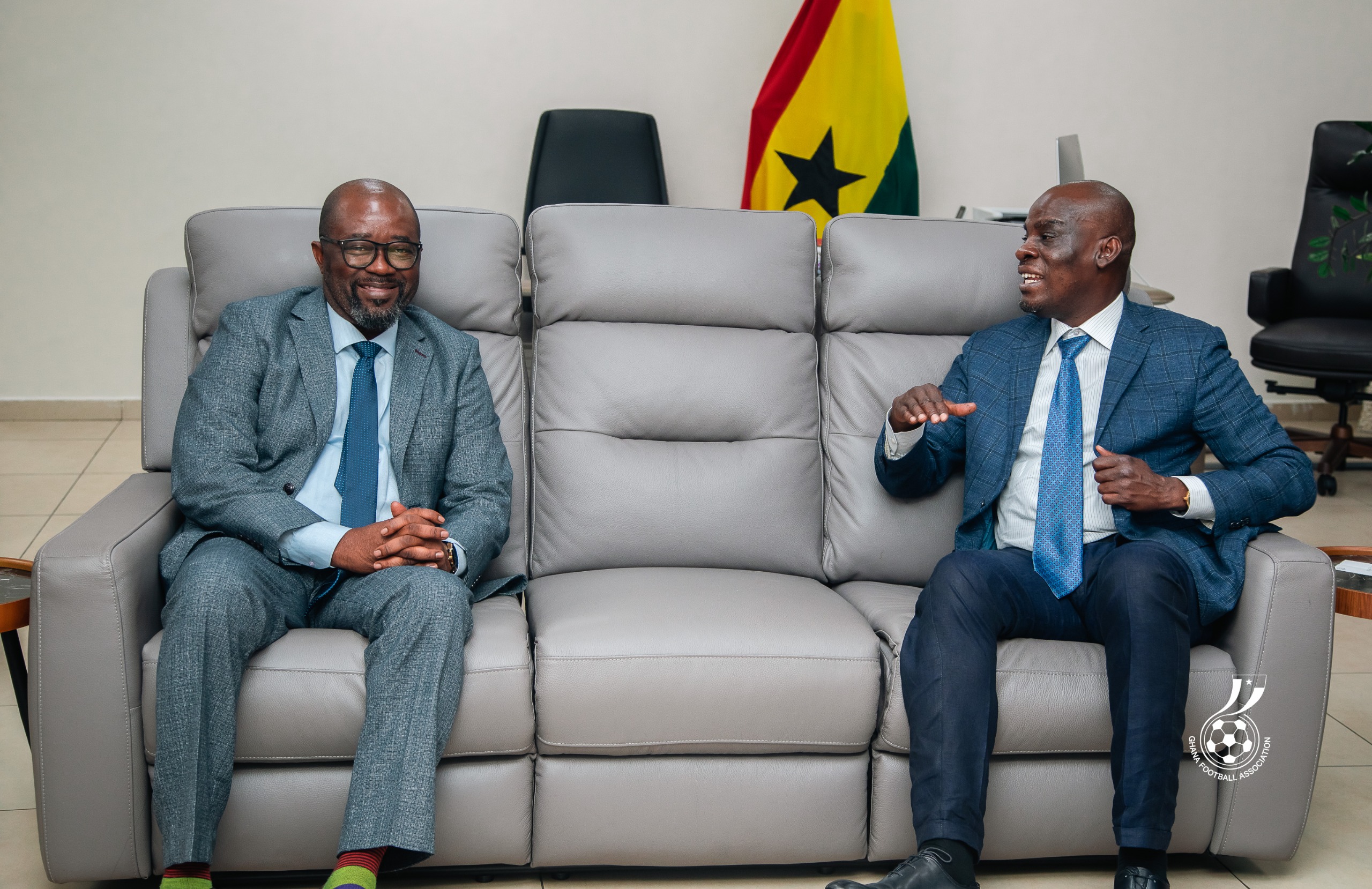 President of the Football Association, Kurt Edwin Simeon-Okraku, on Tuesday, October 14, 2025, paid a courtesy call on the Minister of Education, Hon. Haruna Iddrisu, to discuss key areas of collaboration between the GFA and the Ministry aimed at advancing the development of football and education in Ghana. During the meeting, held at the Ministry of Education in Accra, President Simeon-Okraku expressed his sincere appreciation to the Honourable Minister for the warm reception and his openness to dialogue on issues that bridge the gap between education and football. He emphasized the Football Association’s commitment to building a strong and sustainable partnership with the Ministry, rooted in shared values and mutual goals that serve the national interest. The discussions centered on the synergy between education and football, particularly how the beautiful game can be integrated more effectively into the educational framework to promote youth development, discipline and talent discovery. Hon. Haruna Iddrisu commended the GFA President and his administration for their proactive efforts in developing football at all levels and for recognising the important role education plays in shaping well-rounded footballers. The Minister reaffirmed his Ministry’s willingness to work closely with the GFA to strengthen the link between academic training and football excellence, ensuring that young talents receive holistic development. This engagement forms part of the President's broader agenda to build strong institutional partnerships that enhance football governance, youth development and the overall sporting ecosystem in Ghana. President Simeon-Okraku was accompanied by Executive Council members Samuel Aboabire and Gideon Fosu as well as technical director of the Football Association, Professor Joseph Kwame Mintah.President Simeon-Okraku highlighted several GFA initiatives, including the Catch Them Young Refereeing Programme and the School Football Development Project, as examples of how the Football Association is aligning its development strategy with the national education system. He also reaffirmed the GFA’s readiness to collaborate with the Ministry on policies that support physical education and football infrastructure development in schools.