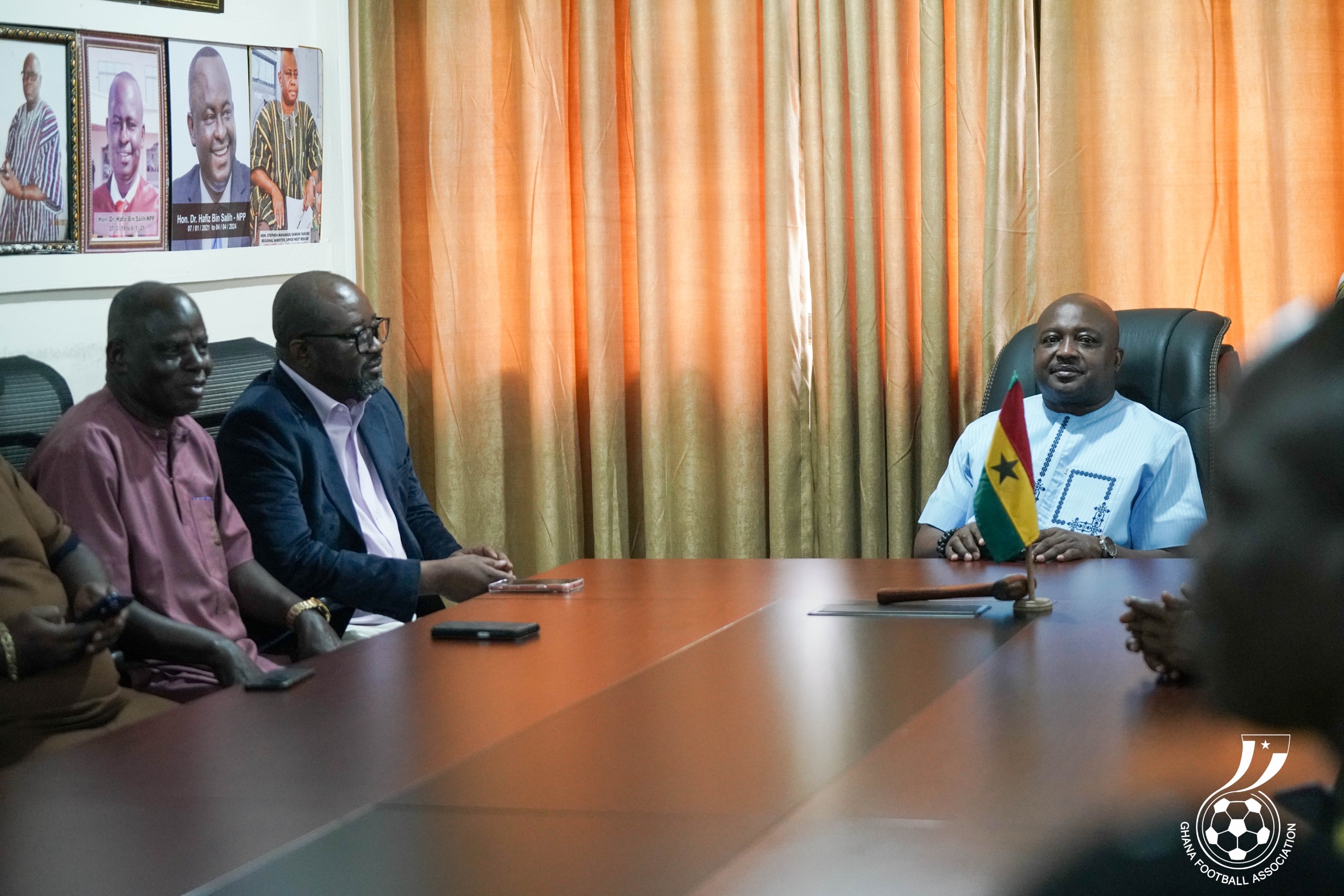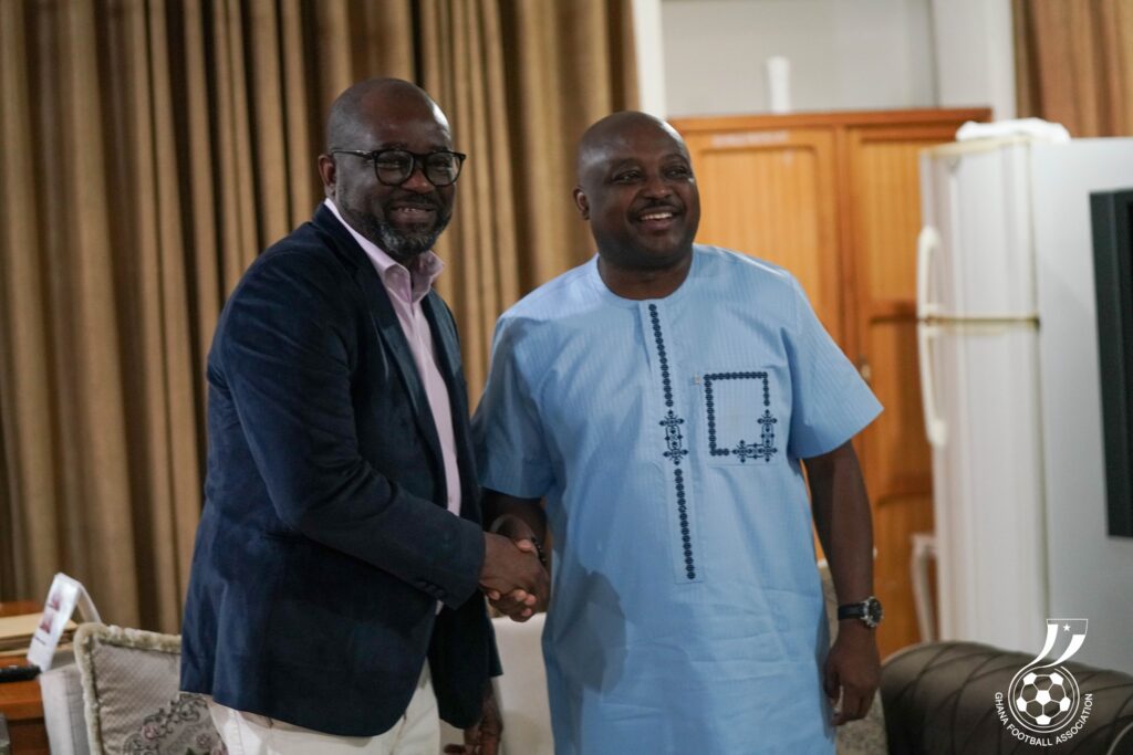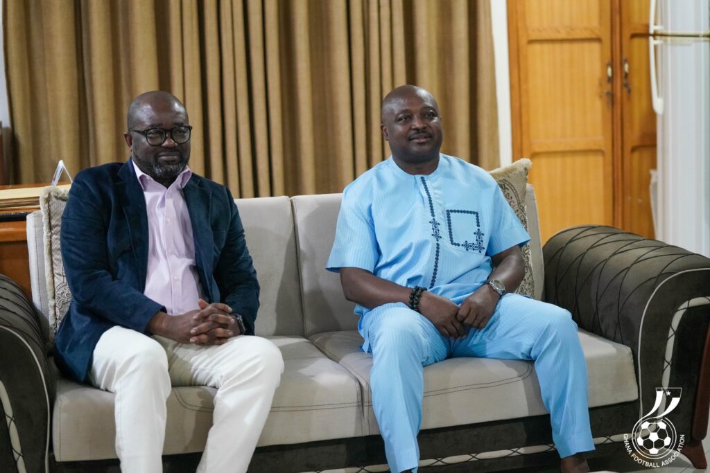 President of the Football Association, Kurt Edwin Simeon-Okraku, has paid a working visit to the Upper West Regional Minister, Hon. Charles Lwanga Puozuing, Esq., to discuss matters of shared interest, with a strong focus on football development and youth infrastructure.