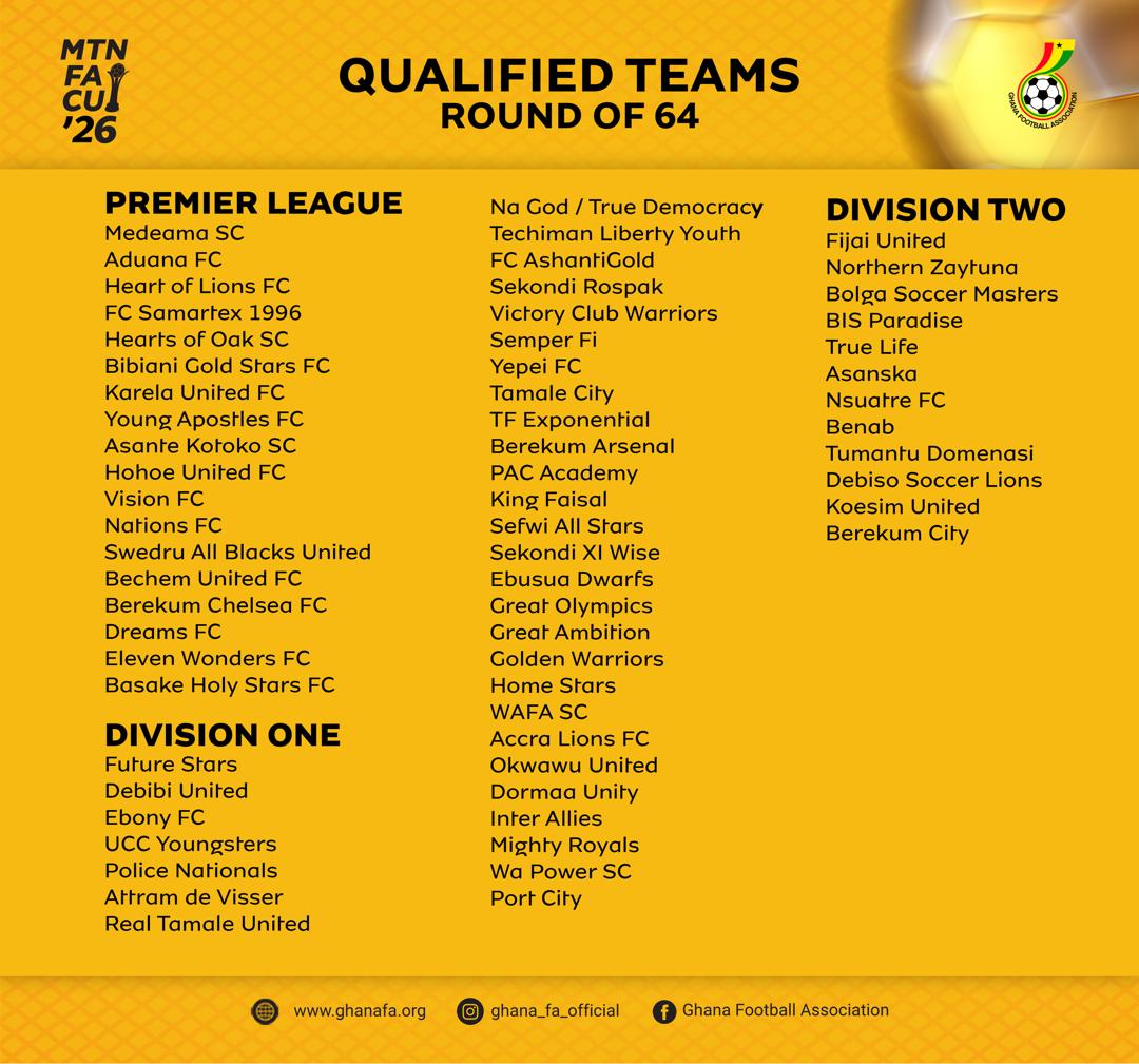 The stage is set for an exciting next phase of the 2025/26 MTN FA Cup, with the 64 qualified teams confirmed ahead of the official draw scheduled for next week.