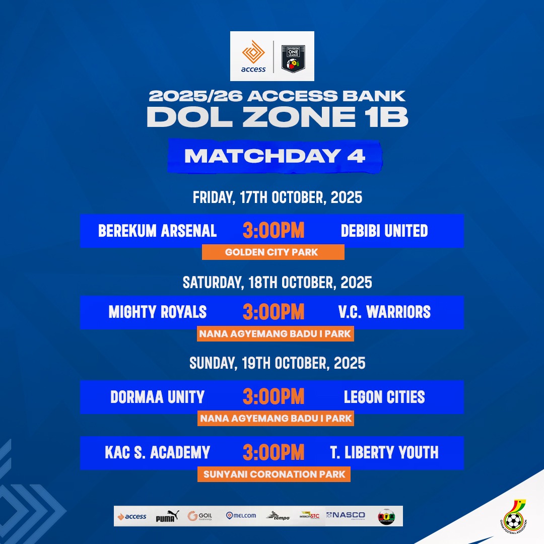 Berekum Arsenal and Debibi United will do battle at the Golden City Park on Friday as the Access Bank Division One League enters Matchday 4 this weekend. Debibi United leads Zone One B with 7 points, while Arsenal sits in 5th place with 3 points after only one win in three matches.