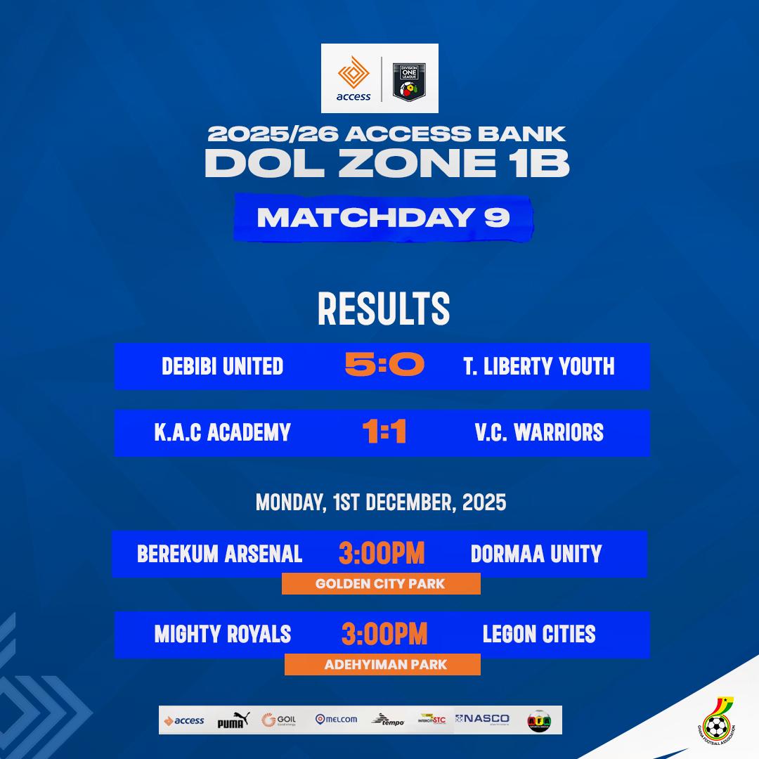 Meanwhile, Real Tamale United slipped to second place in Zone One A after a goalless draw against Sankara Nationals, despite dominating the match.