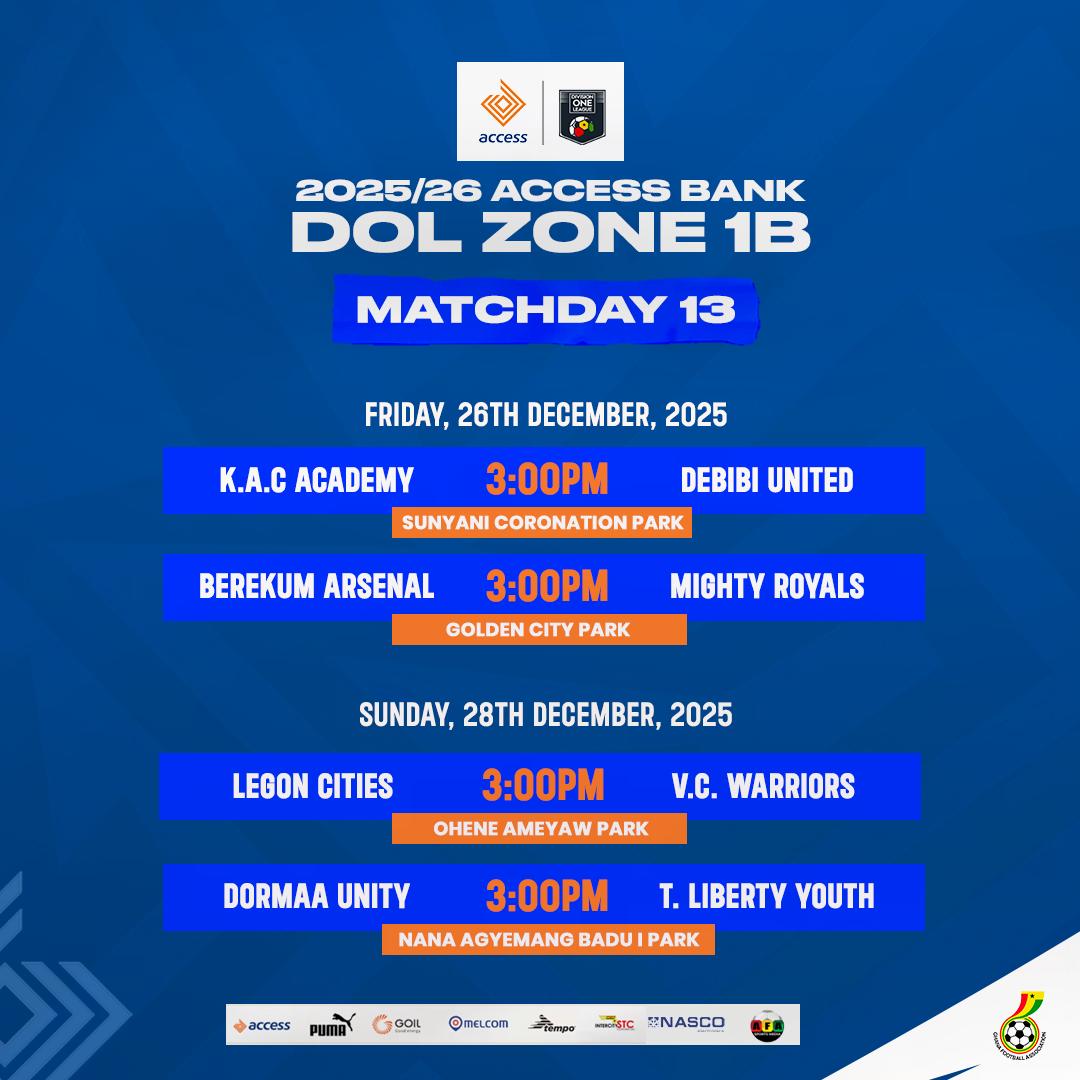 In Zone One B, leaders Debibi United will clash with KAC Academy at the Sunyani Coronation Park. Debibi United have taken a commanding lead in the Zone and are on a good run after suffering only one defeat (3-1 to Wamanafo Mighty Royals) in 12 matches. They have scored 23 goals and conceded 7 goals – but face a tricky test against second-place KAC Academy, who trail them by 6 points. Recent victories against Berekum Arsenal, Techiman Liberty Youth, Victory Club Warriors, and Legon Cities give them momentum ahead of Sunday’s clash, but KAC Academy won’t come cheap following their recent form in the League. KAC Academy are on a fantastic run – after picking 4 wins and one draw in their last five matches. Their impressive home form sets them apart, and a win will help them close the gap on the leaders – setting up an intense affair on Sunday.