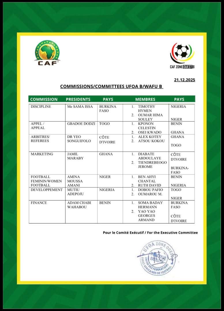 The West African Football Union (WAFU) Zone B has appointed three Ghanaians—Jamil Maraby, Alex Kotey and Osei Kwadwo Adow—to its newly constituted committees, marking a significant milestone in the sub-regional body’s governance and administrative evolution.