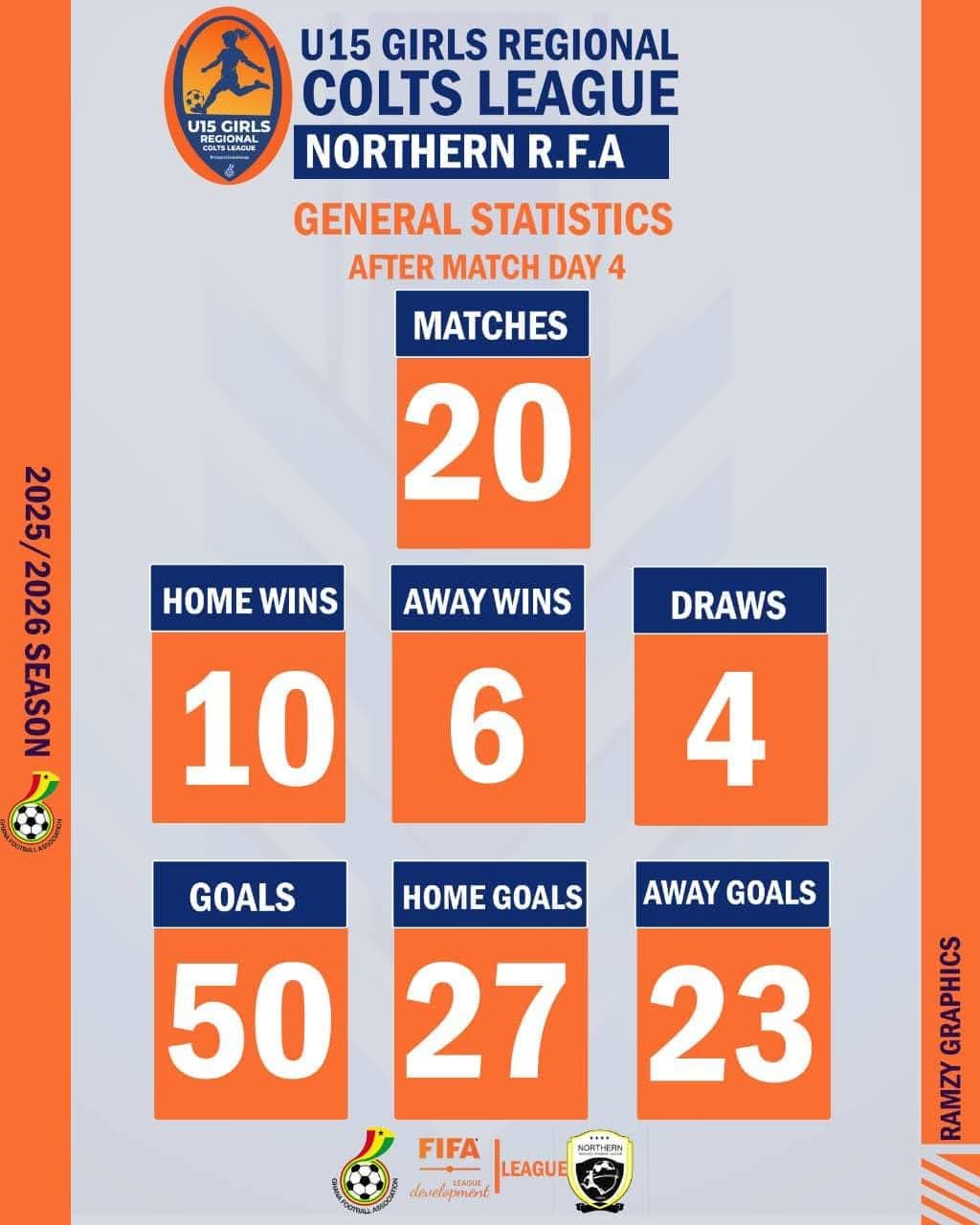 The race for the top spot in the U15 Girls Regional Colts League is intensifying, with Talented Ladies and Rising SC locked in a fierce battle at the summit. After four matches, both teams remain unbeaten, each accumulating 10 points.